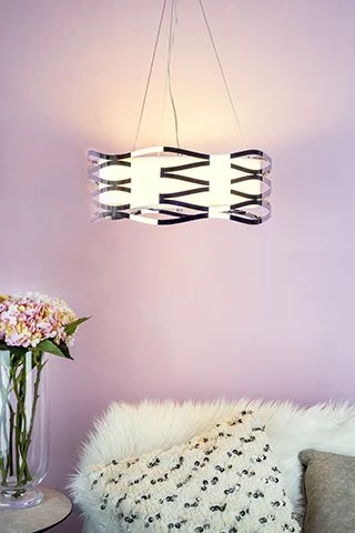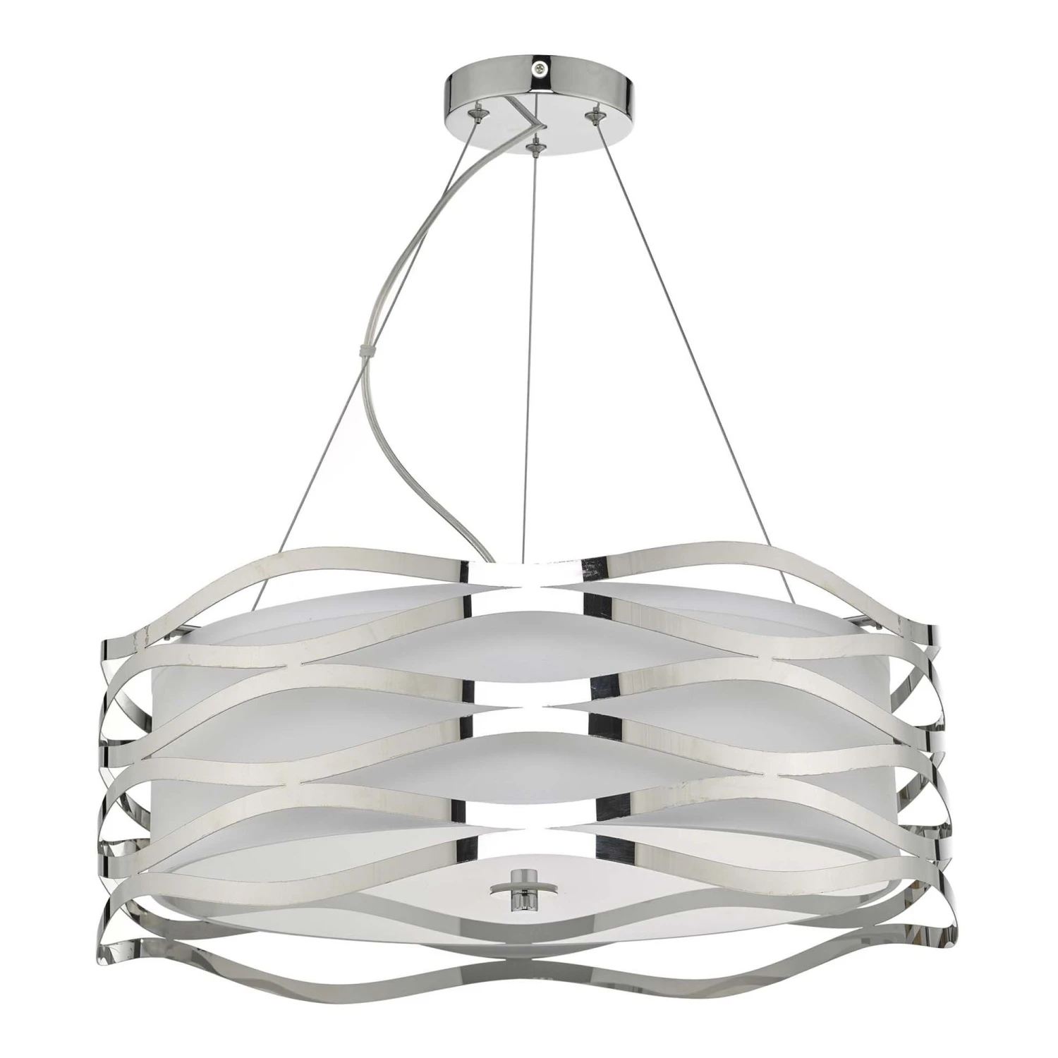 The Mizella 3 light Pendant is a contemporary stainless steel pendant with fabric inner and glass diffuser in a polished chrome finish
