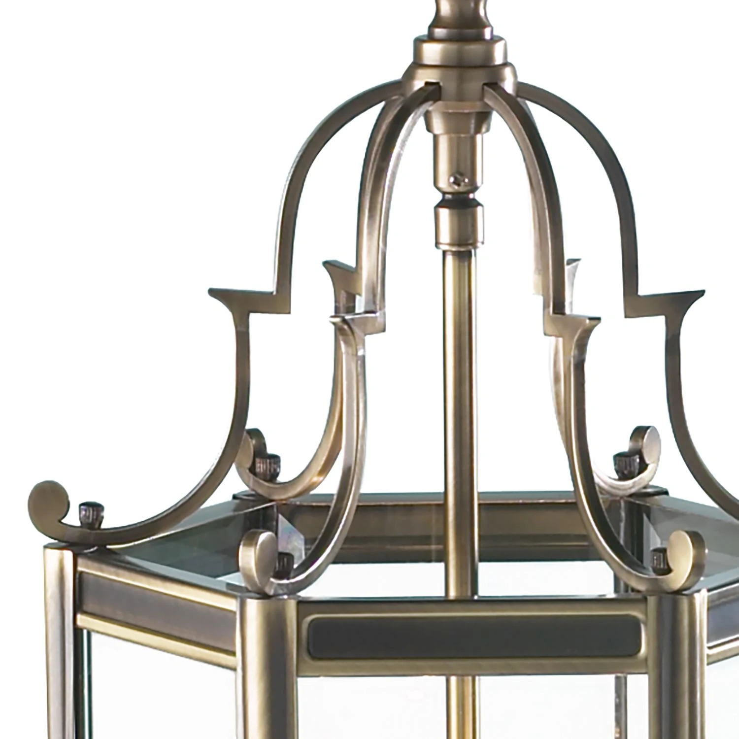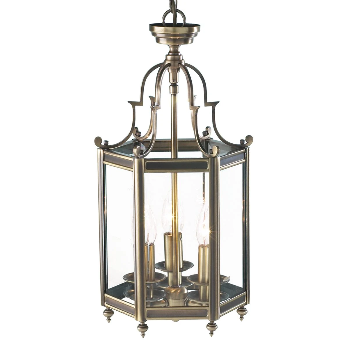 The MOORGATE boasts a row of 3 lamps set within a clear glass panelled, cast antique brass frame.