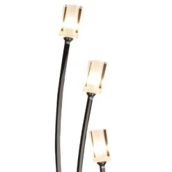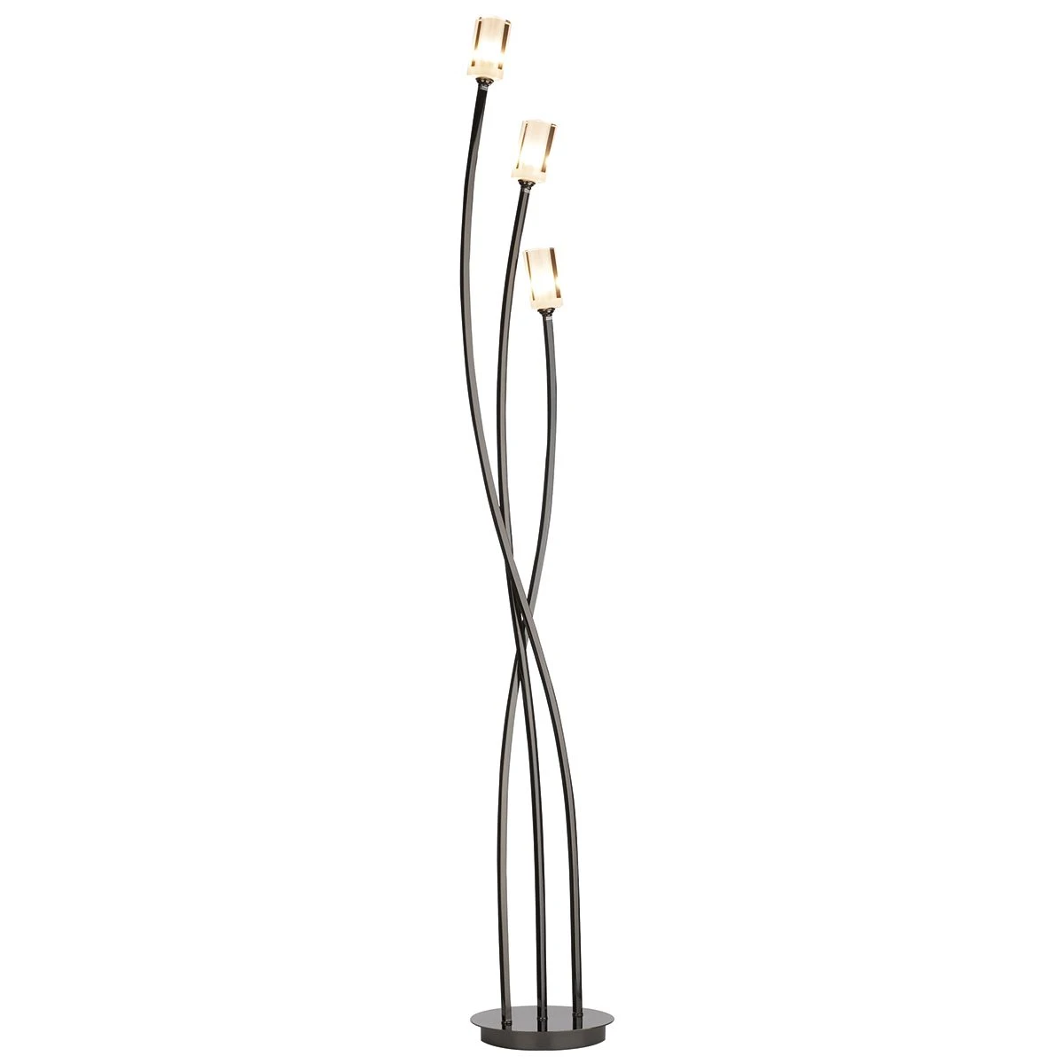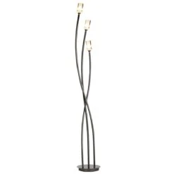 The MORGAN 3lt Floor Lamp has clear glass shades with frosted inner detail and a black chrome frame.