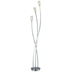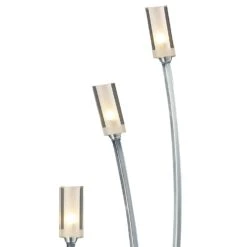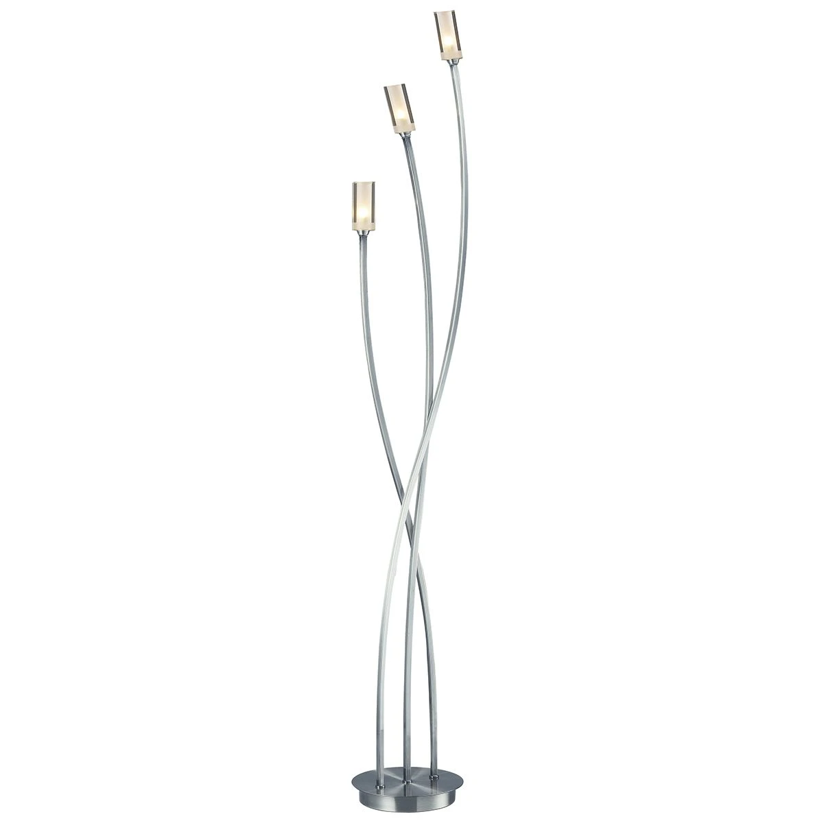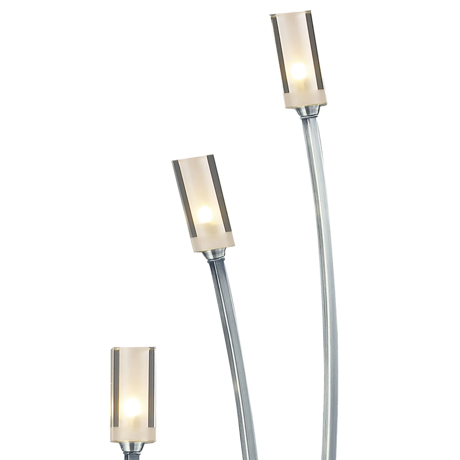 The MORGAN 3lt Floor Lamp has clear glass shades with frosted inner detail and a satin chrome frame.