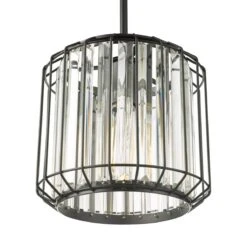 The Naeva single pendant features a contemporary satin black cage surrounding stunning faceted crystal. This blend of black and crystal makes it a great choice where other black accents are already present in your design scheme, such as Crittal black framed windows. The Naeva single pendant is perfect for hallways and bedrooms or used in a series in a kitchen or dining room.