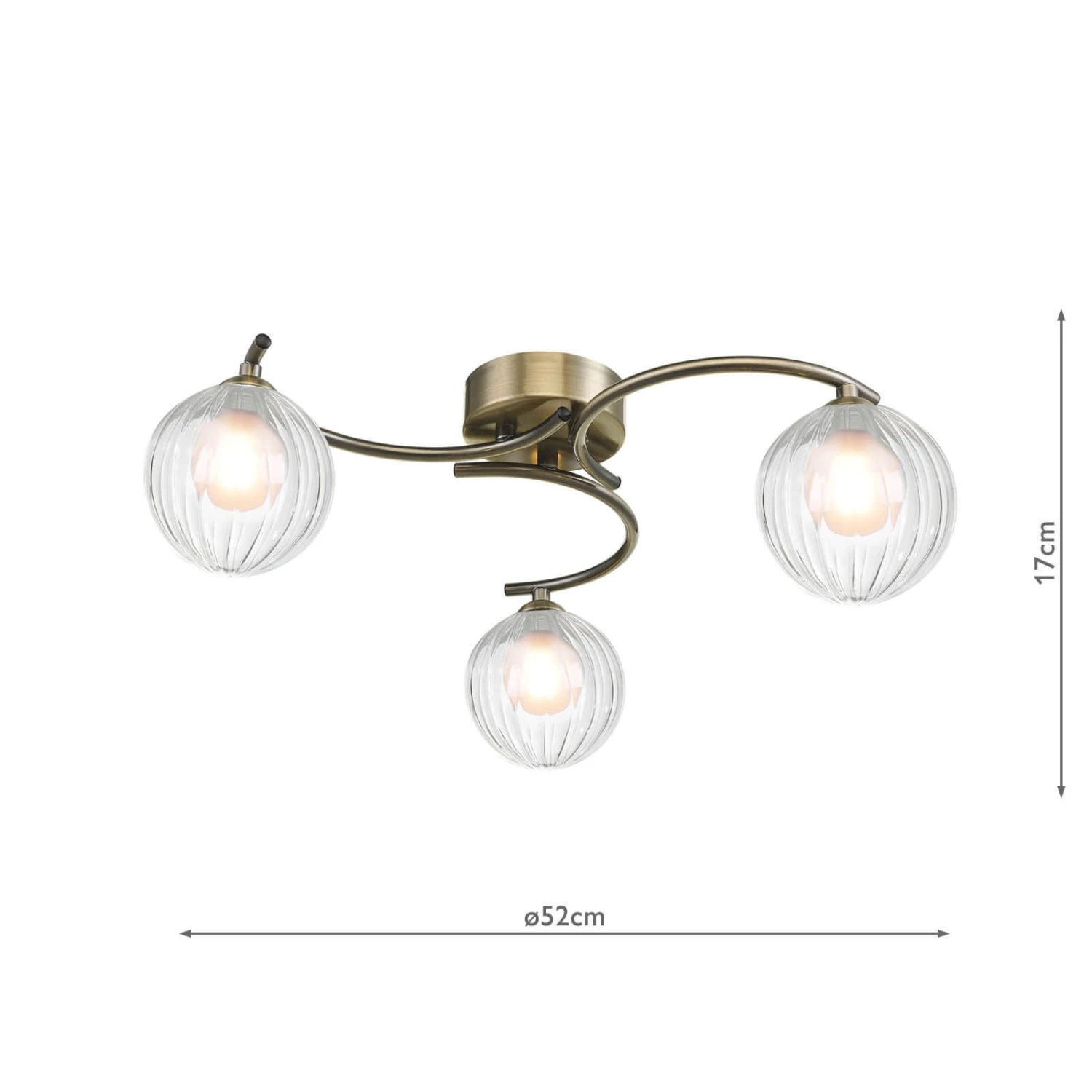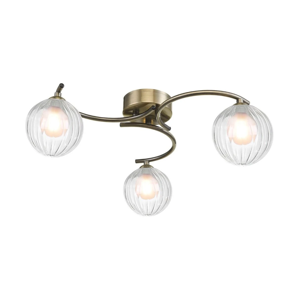 The Nakita 3 Light Semi-Flush Antique Brass & Clear/Opal Glass is a beautiful semi-flush fitting with duplex glass combining a ribbed clear outer and a frosted inner to reduce glare. The simple antique brass frame suits low ceiling rooms and allows the glass to really shine. The Nakita semi-flush is suitable for an entryway, dining room or anywhere a little style is needed.