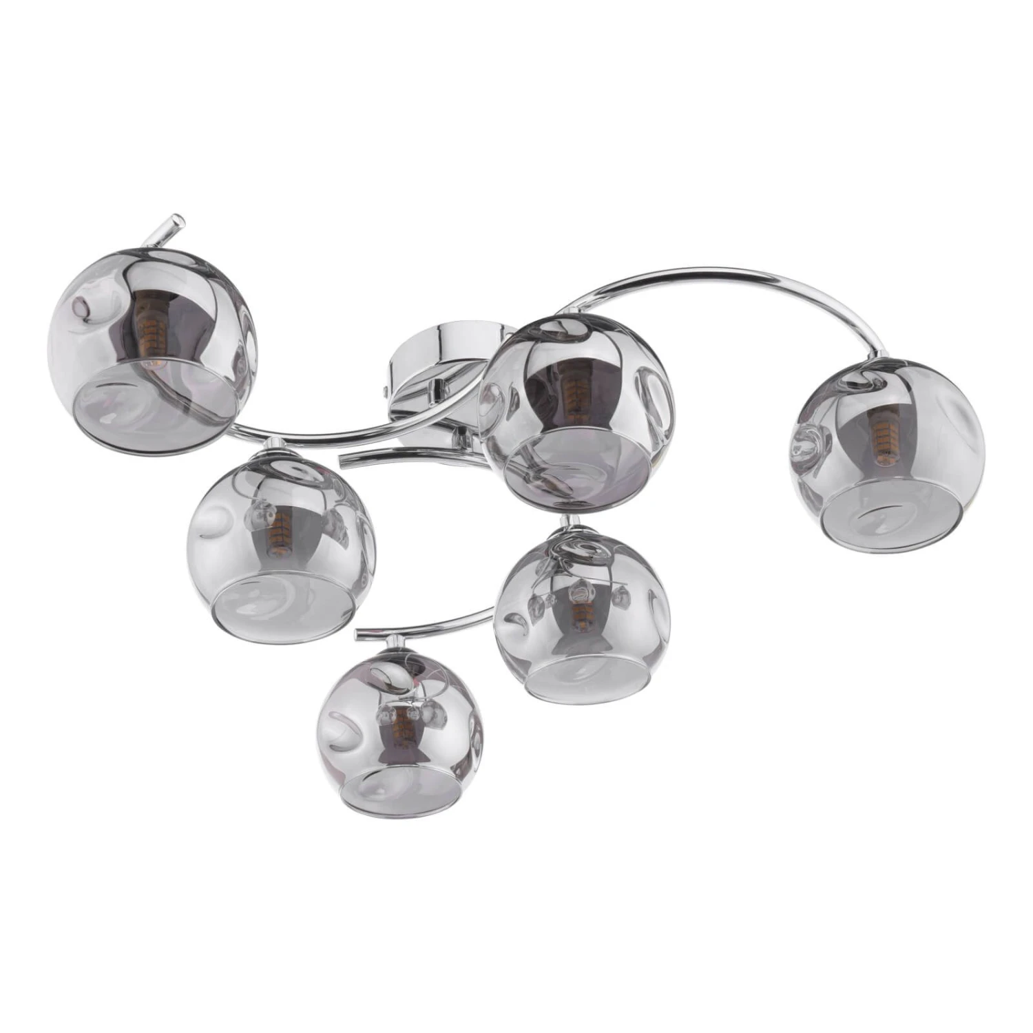 The NAKITA 6 Light Semi Flush ceiling light is finished with a polished chrome frame and smoked organic shaped glass shades surrounding the G9 lamps. The six lights are capable of great light output, and the gracefully curving arms give a generous diameter of 60cm, ensuring the light spill covers a larger area. Combined with a height of just 16cm, make this a great choice for larger rooms and low ceiling areas.