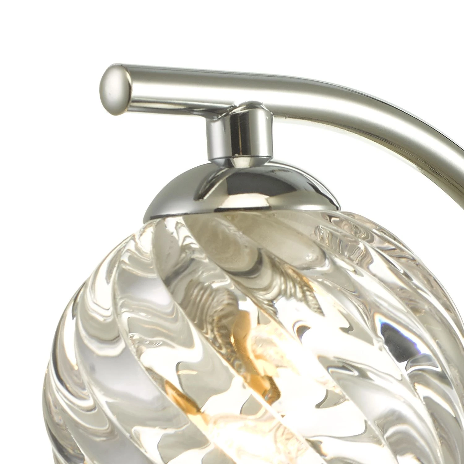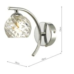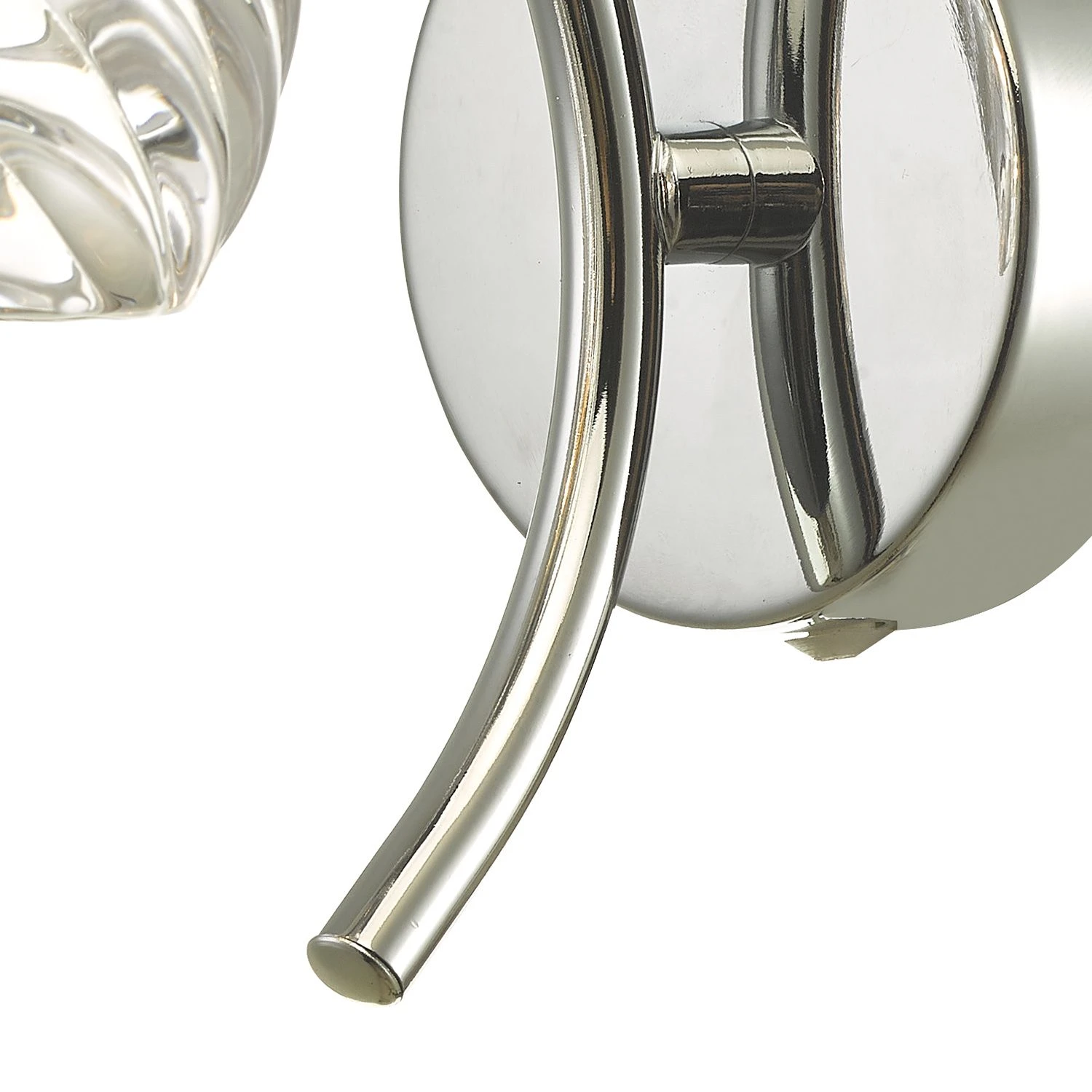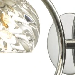The Nakita single wall light in polished chrome and clear glass shades. The heavy glass pressed glass shades of the Nakita single wall light have twisted pattern that flows with the arms and gives an interesting and beautiful lighting effect when on and still glistens in ambient light when off. The polished chrome finish is our most popular finish, it’s reflective finish looking great against any colourway. The pull cord switch means you can switch it independently to the other lights in your room without the expense of adding extra wall switches. If you already have an extra wall switch don’t worry you can easily set the switch to ‘on’ and remove the cord.