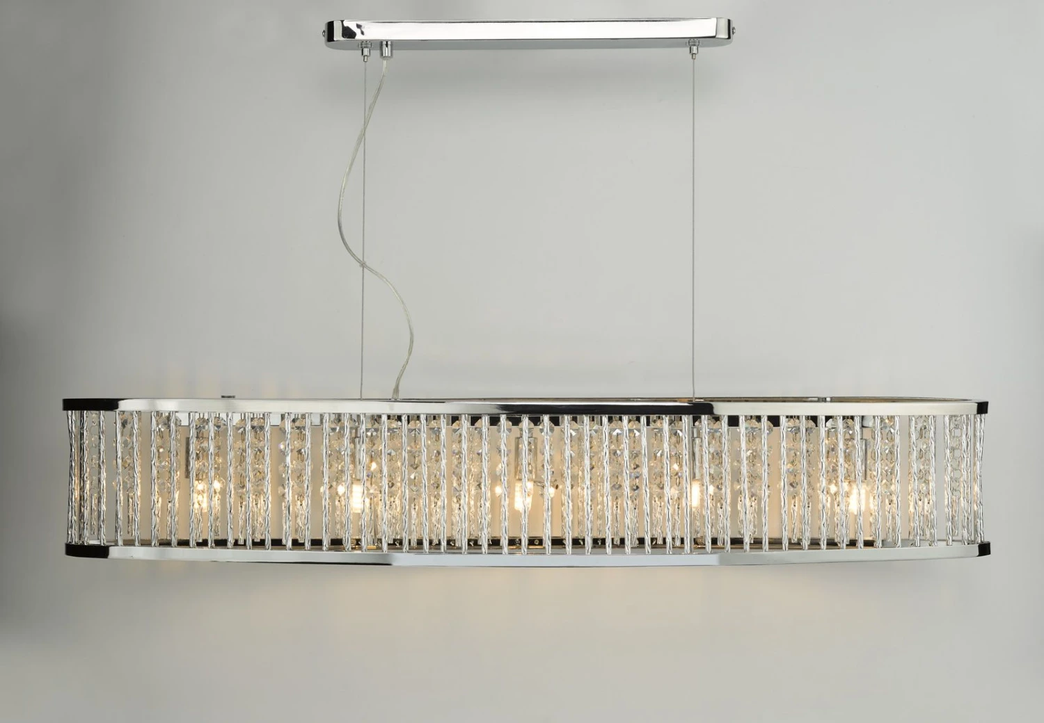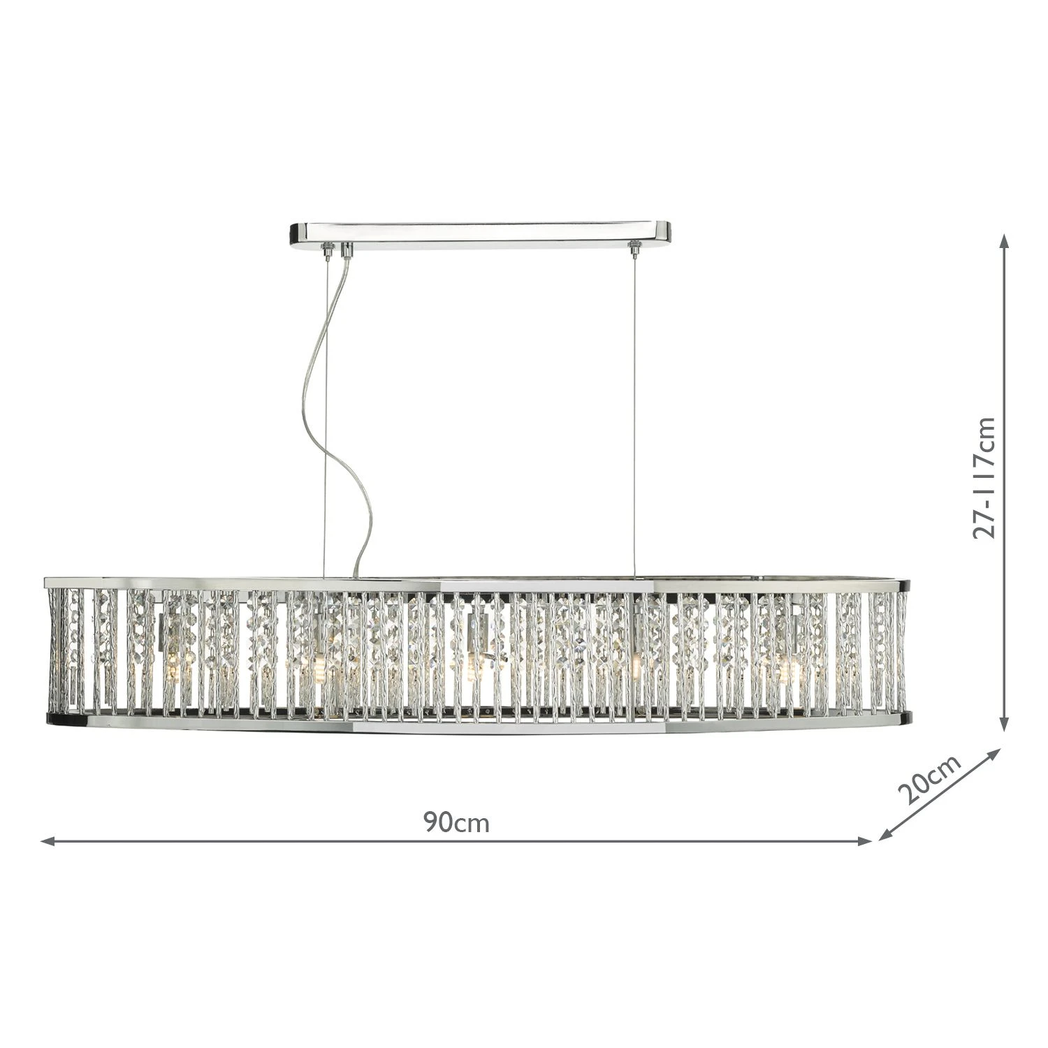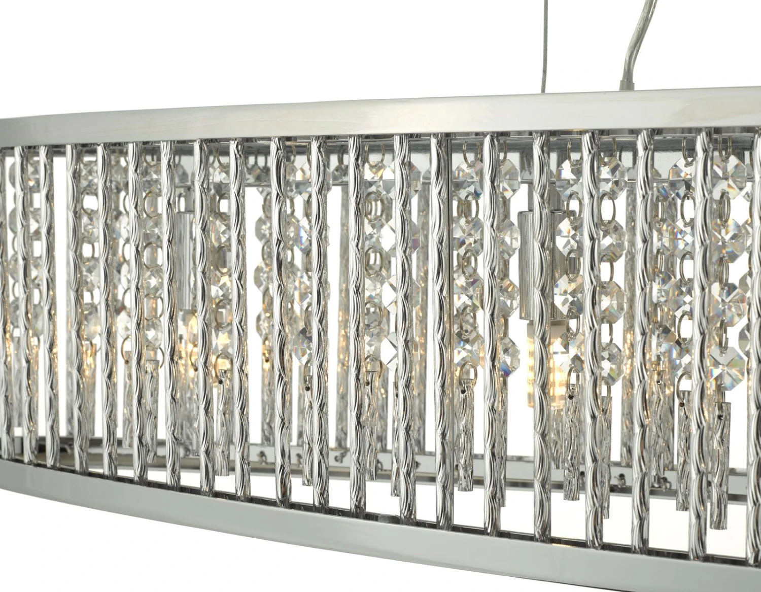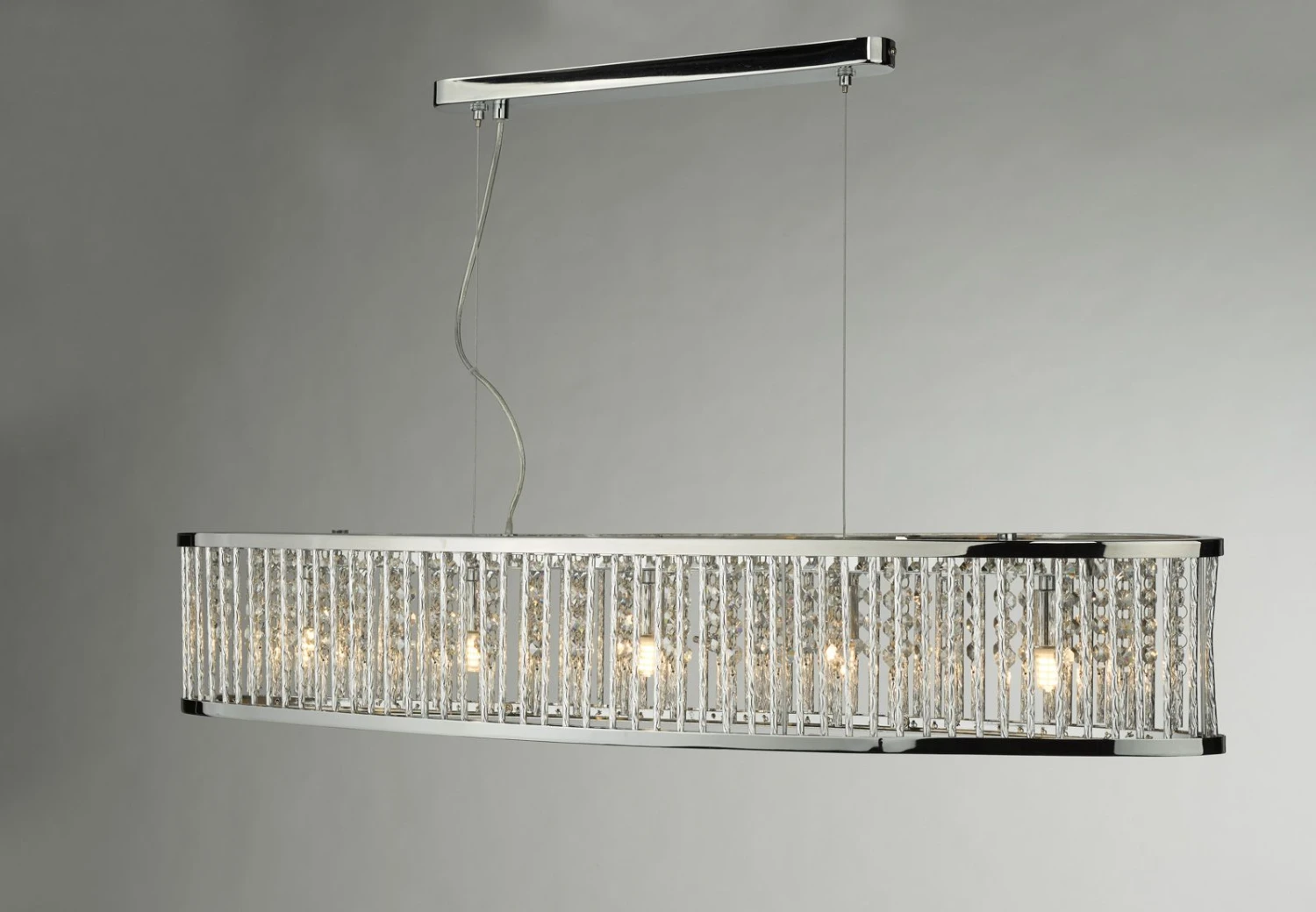 The Nantes 5 light bar pendant ceiling light features carved aluminium rods encase faceted acrylic beads to refracting the light to create an eye catching ceiling light. With 1m of steel tension cable, which can be adjusted on installation to suit your ceiling height and positioning.