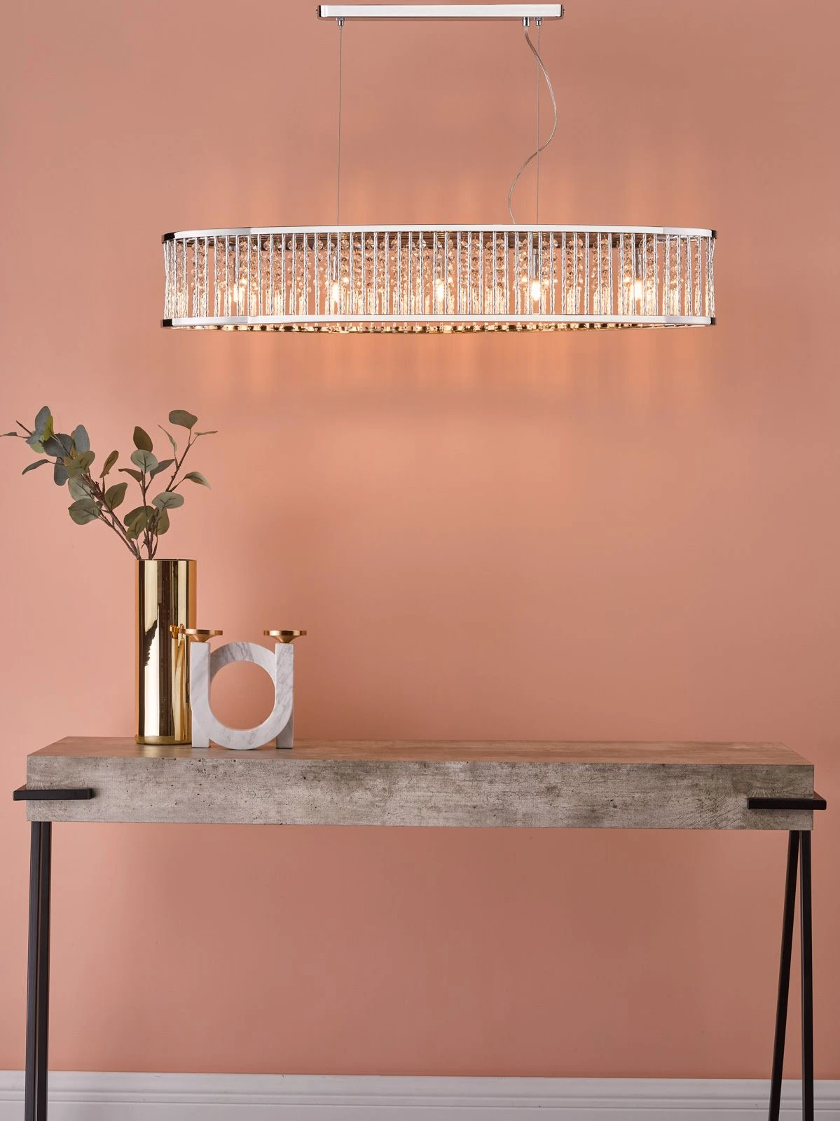 The Nantes 5 light bar pendant ceiling light looks great over a breakfast bar in the kitchen or a long table in the dining room.