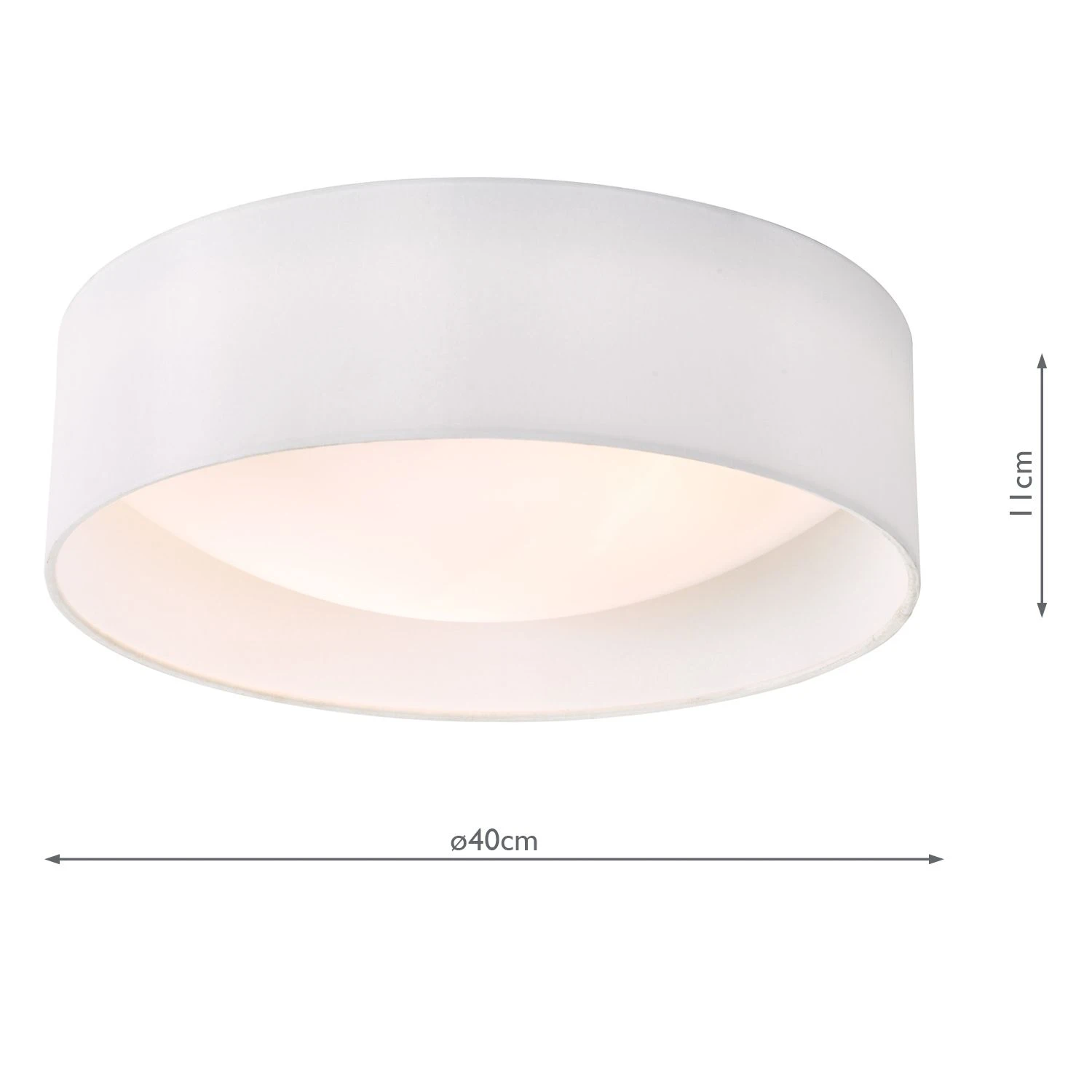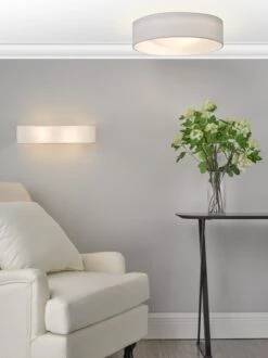 The Medium Nysa flush ceiling light with Ivory faux silk shade and polycarbonate diffuser offers a bright even non glaring light with the addition of a fabric shade to offer more homely look for a flush light. The fabric colour matches that of our Ronda range of ceiling lights and wall lights. The Nysa flush ceiling light is specifically designed for low ceilings, see our collection of Lighting for low ceilings for more inspirational lighting that’s suitable for the more modest ceiling heights of modern houses. The Nysa flush ceiling light takes E27 (SES) lamps, we’d always recommend using one of our highly efficient LED lamps available in a warm 3000k temperature or a crisp cool white 4000k, take a look at our LED Lamps for the full range.