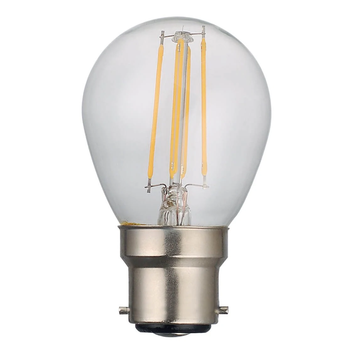 Pack of 5, Dimmable LED Golf Ball Light Bulb (Lamp) Bayonet Cap B22; 4W; 400 Lumens; 2700k Warm White; Clear Glass