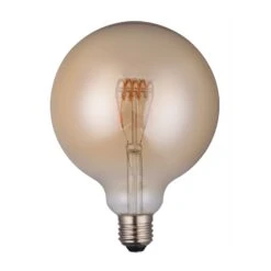 Pack of 5, Dimmable LED Vintage Large Globe Light Bulb (Lamp) ES/E27; 4W; 140 Lumens; 1800K Very Warm White; Amber Glass