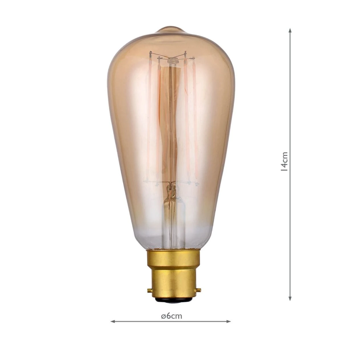 Pack of 5, Dimmable LED Vintage Rustika Light Bulb (Lamp) Bayonet Cap B22 GLS; 4W; 240 Lumens; 1800k Very Warm White; Amber Glass