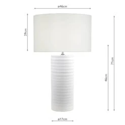 The Pascha Table Lamp is a hand-thrown white ceramic base with a tactile unglazed finish. The Pascha table lamp features a complimentary white linen shade and a white cable with an inline rocker switch. Looks great as a pair on Lounge side tables or as an oversized bedside lamp.