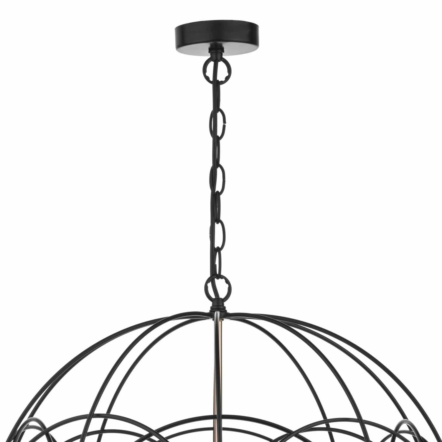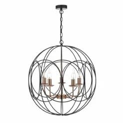 The PHOENIX five-light pendant in polished copper is surrounded by a matte black looped frame. Suspended with 1.5m of chain, which is adjustable on installation.