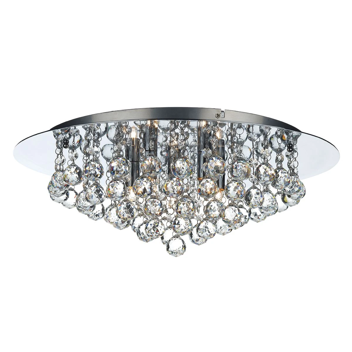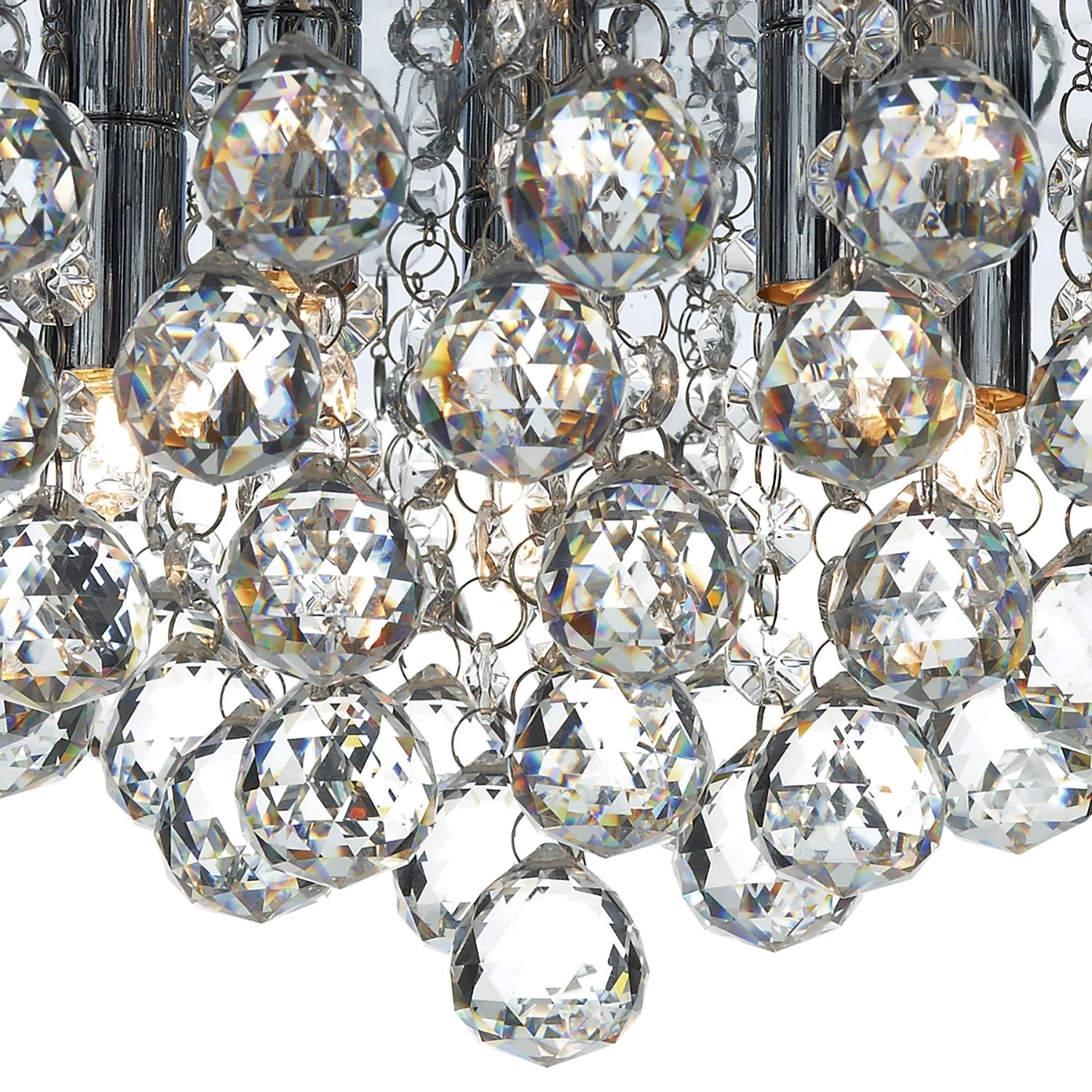 Featuring rings of faceted crystal drops and a polished chrome ceiling plate, the PLUTO 5lt Flush fitting comes fully assembled.