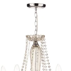 The fitting features champagne coloured glass and crystal glass draping beads and faceted drops.