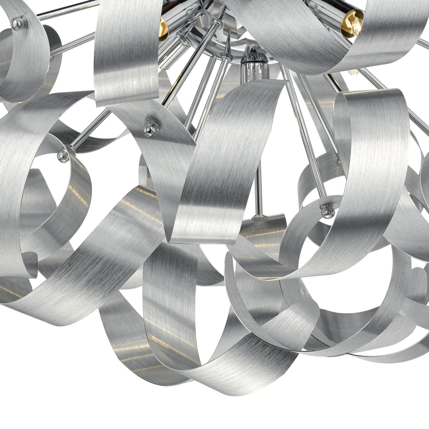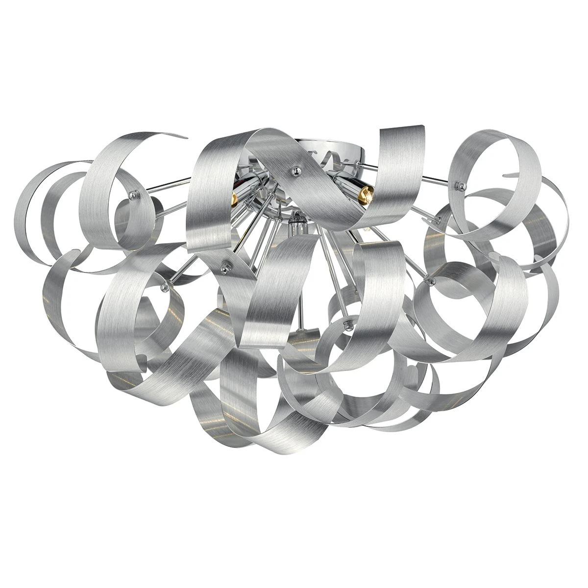 The RAWLEY 5 light flush features twirling ribbons of brushed aluminium around a polished chrome frame. At a generous diameter of 60cm this flush will look stunning in modern spaces with lower ceiling heights.