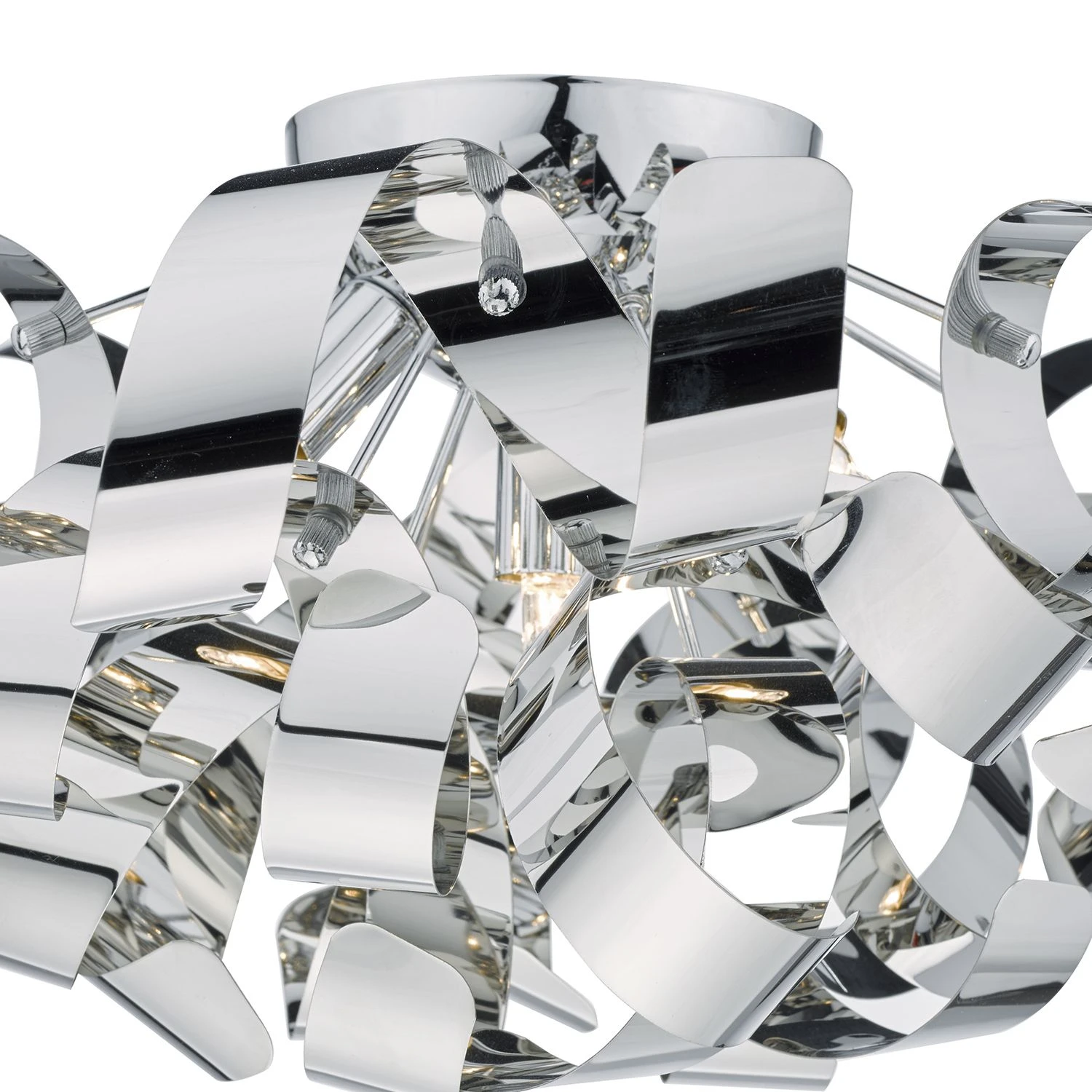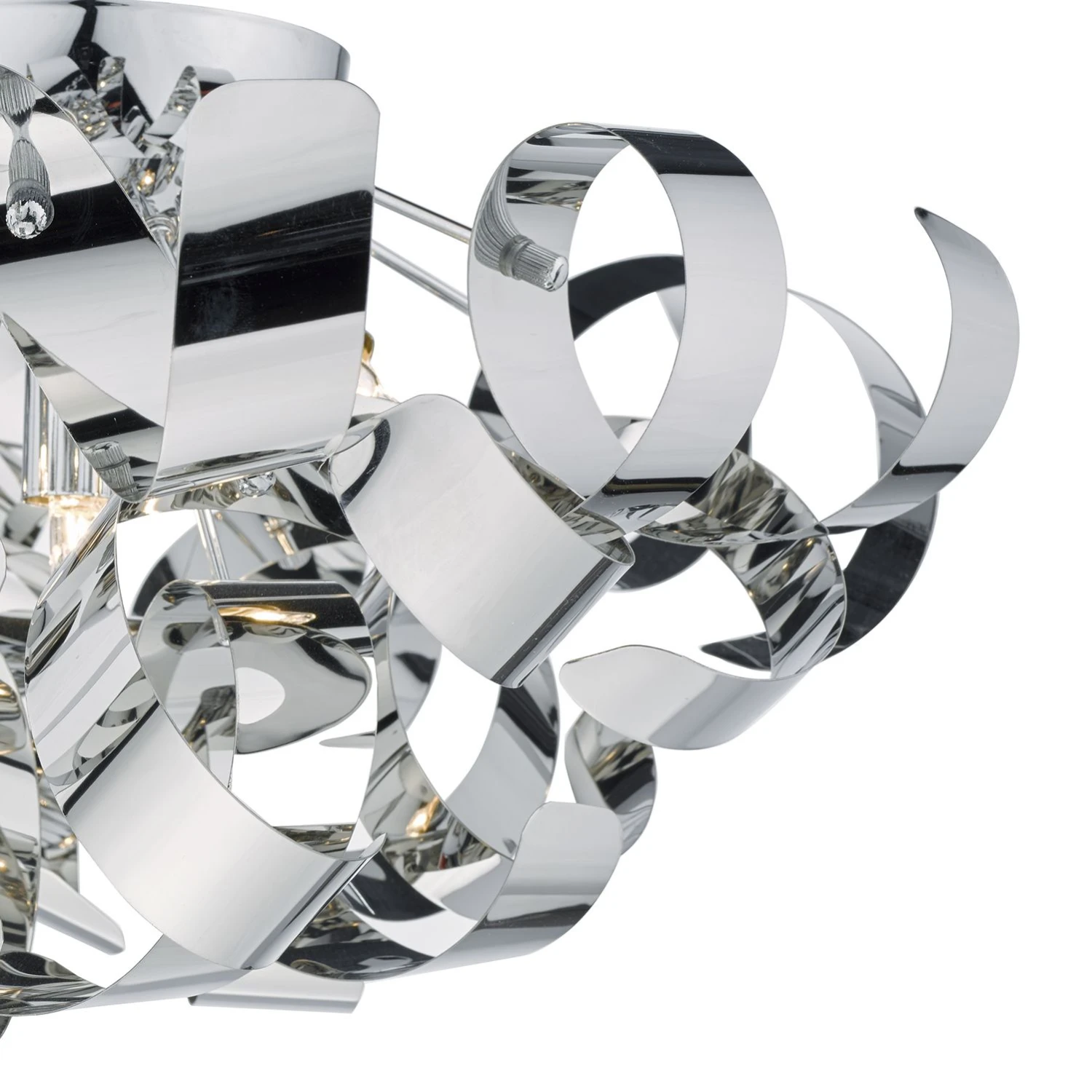 The RAWLEY 5 light flush features twirling ribbons of polished chrome around a polished chrome frame. At a generous diameter of 60cm this flush will look stunning in modern spaces with lower ceiling heights.