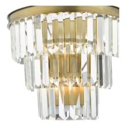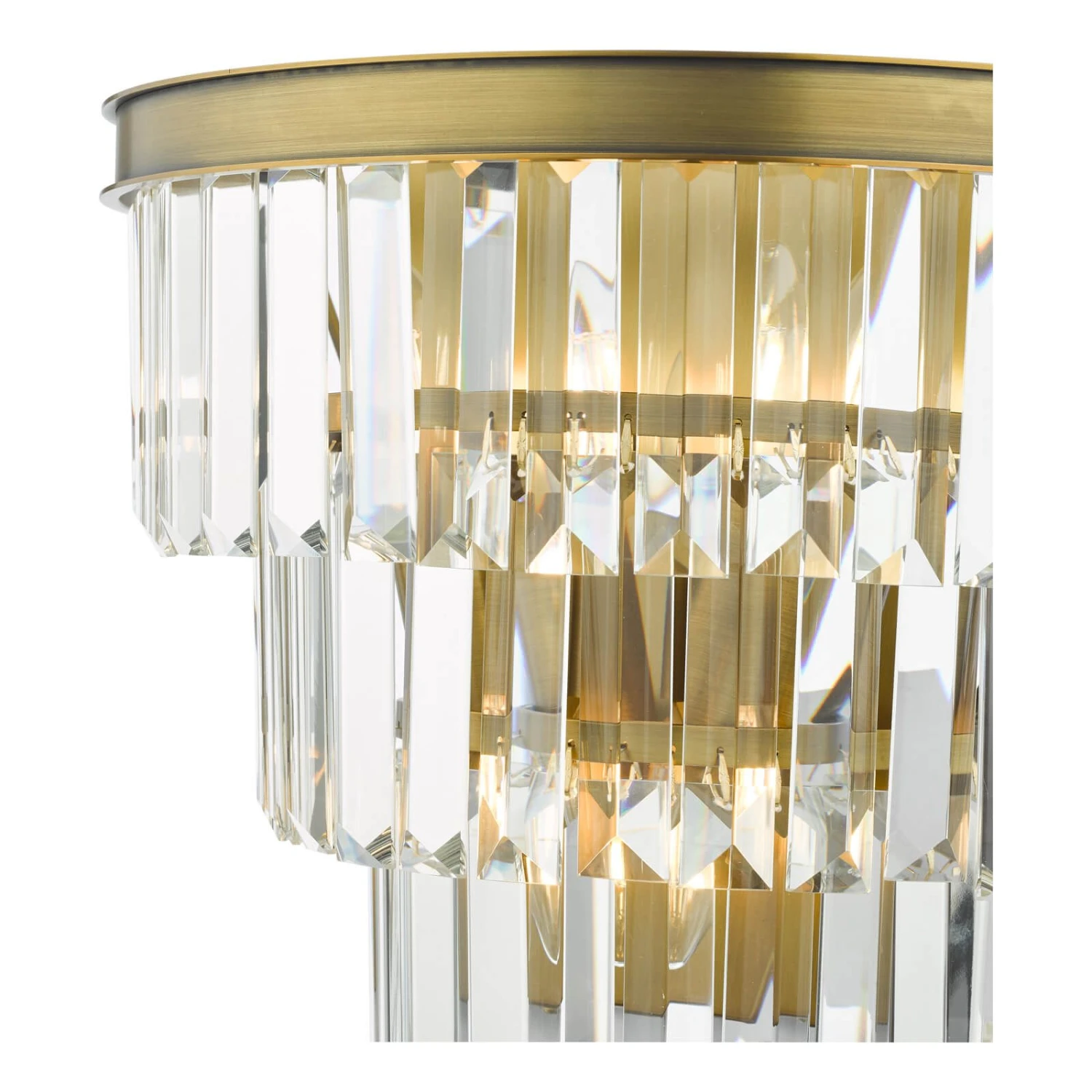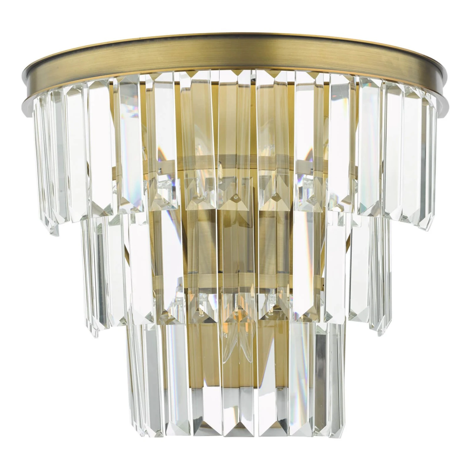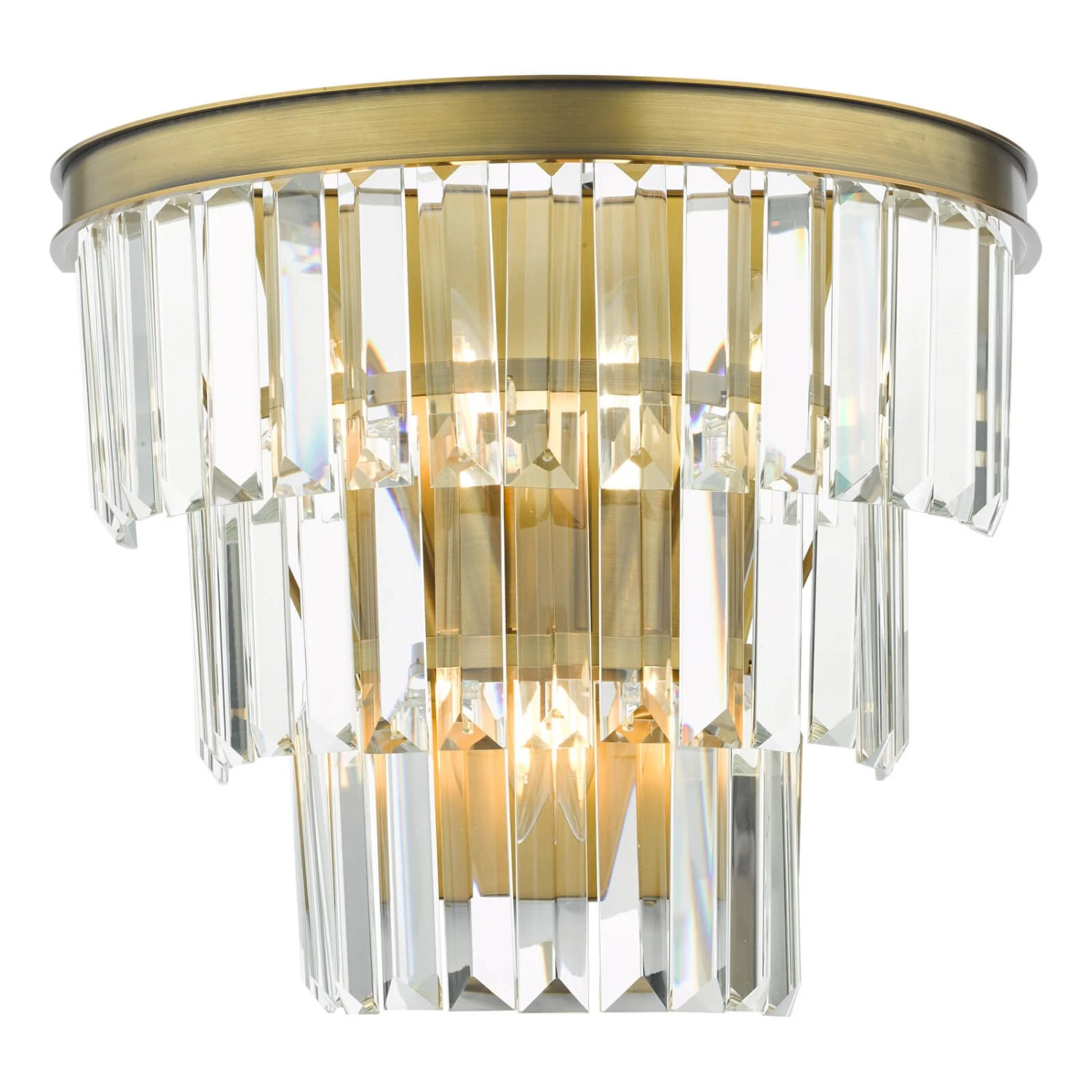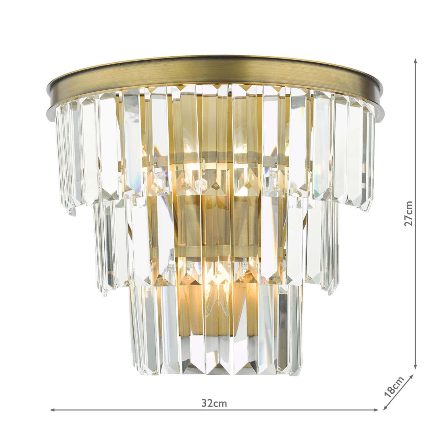 The Rhapsody 3 Light Wall Light Crystal and Bronze is an oversized wall light with a tiered bronze frame and 3 tiers of coffin crystals. The Rhapsody wall light complements the Rhaposdy chandelier but stands out on its own.