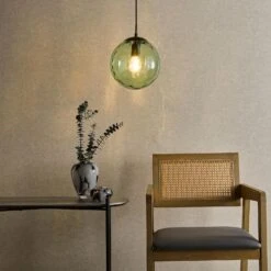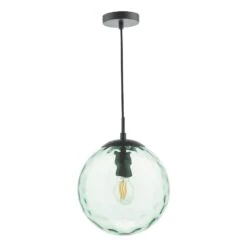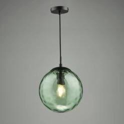 The Ripple Pendant Matt Black & Green Glass is a beautiful yet understated ripple glass pendant with a black braided cable. The Ripple pendant features a simple yet stylish matt black metal frame, with a green glass shade that mimics calm water. The height is adjustable on installation, allowing you to set it at the perfect height. Use alone or group several together for an eclectic display. Whether you prefer a minimalist or maximalist style, the Ripple pendant is sure to add a touch of style to your space.
