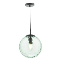 The Ripple Pendant Matt Black & Green Glass is a beautiful yet understated ripple glass pendant with a black braided cable. The Ripple pendant features a simple yet stylish matt black metal frame, with a green glass shade that mimics calm water. The height is adjustable on installation, allowing you to set it at the perfect height. Use alone or group several together for an eclectic display. Whether you prefer a minimalist or maximalist style, the Ripple pendant is sure to add a touch of style to your space.