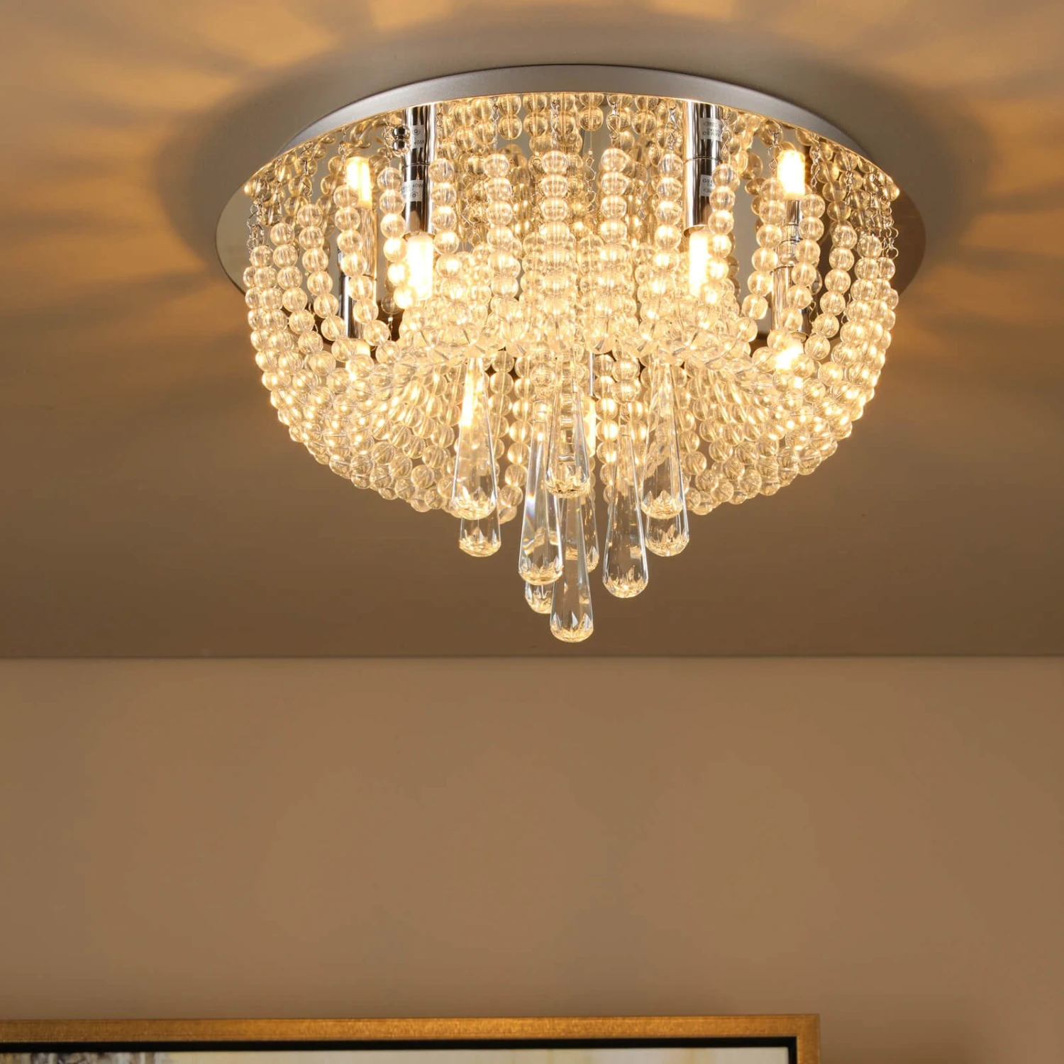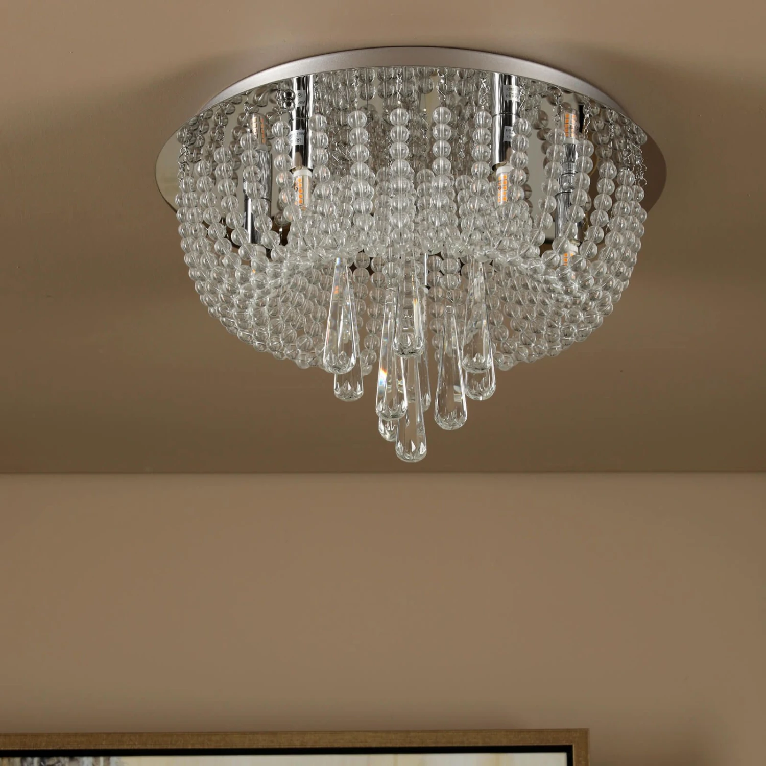 Festooned with crystal glass beads around a lavish arrangement of central glass drops, the SAIGON 5lt Flush is a beautiful decorative piece perfect for adding glamour to rooms with lower ceiling heights.