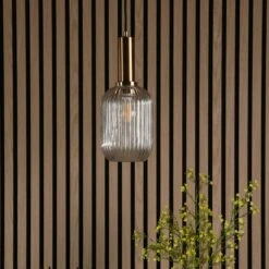 The Sawyer Easy Fit Shade Champagne Ribbed Glass is an easy fit glass shade with E27 (standard) opening and metal B22 reducer, use with our range of suspensions and with our Idra Floor or Wall Lamp. An easy fit glass shade with a ribbed texture and a lovely champagne colour.