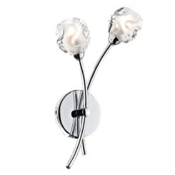 The SEATTLE 2lt wall light has clear sculptured glass shades with frosted inner detail upon a polished chrome frame.