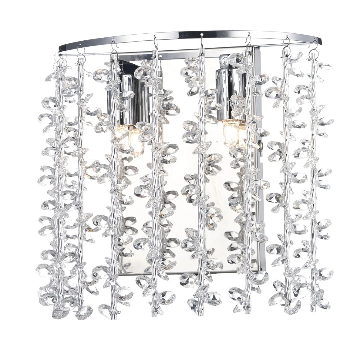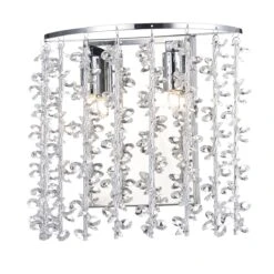 SESTINA is a delicate wall bracket with decorative aluminium rods entwined with crystal beads. With 2 x G9 lamp holders with discrete rocker switch this pretty wall bracket gives a great light to enhance any interior space. The SESTINA range also includes two sizes of ceiling flushes.