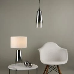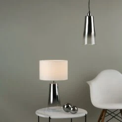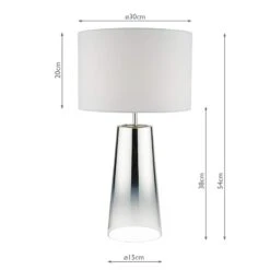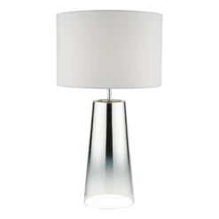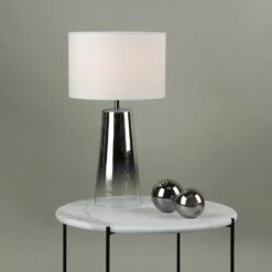 The Smokey is a glass table lamp in a beautifully graduated smoked mirror glass finish. This contemporary table lamp is paired with a stylish white cotton drum shade. Together they present a simple way to add an updated design accent to any room.