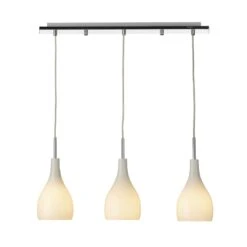 The SOHO 3lt Pendant features a polished chrome ceiling plate and a trio white glass shades.