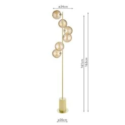 The Spiral 6 Light Matt Gold Floor Lamp with Champagne Glass combines our champagne dimpled glass with a matt gold frame. The result is a contemporary lighting fixture with an eye-catching yet understated look. The Spiral floor lamp features a black cable with a foot-activated switch, allowing easy operation of the lights. Whether used in a reading nook or along a hallway, the Spiral floor lamp adds a touch of modern style to your space.