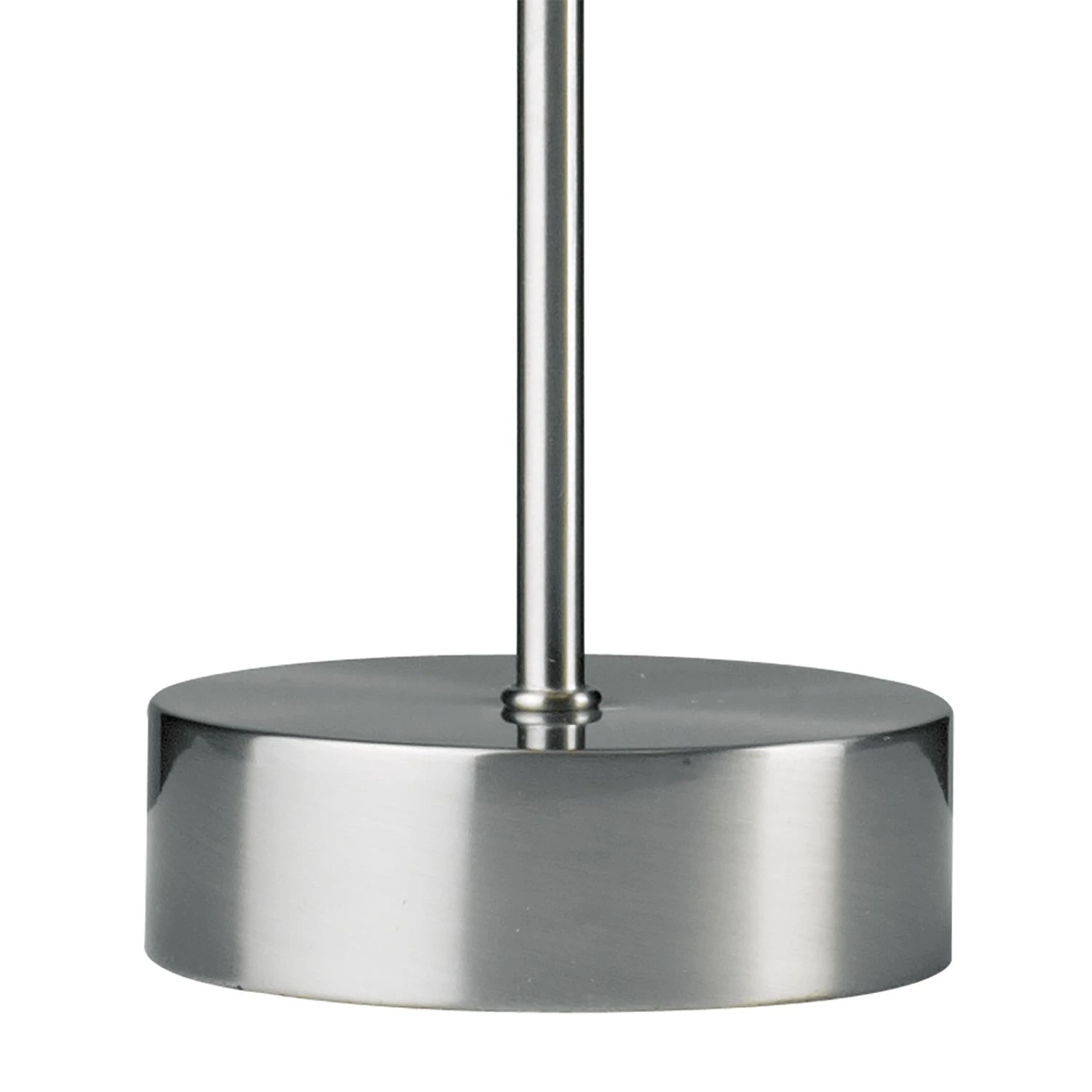 The SUZIE touch table lamp has a drum shade of faux suede in cream atop a satin chrome base. This touch lamp has a neutral shade, small footprint and slender stem, so will fit anywhere in your home.