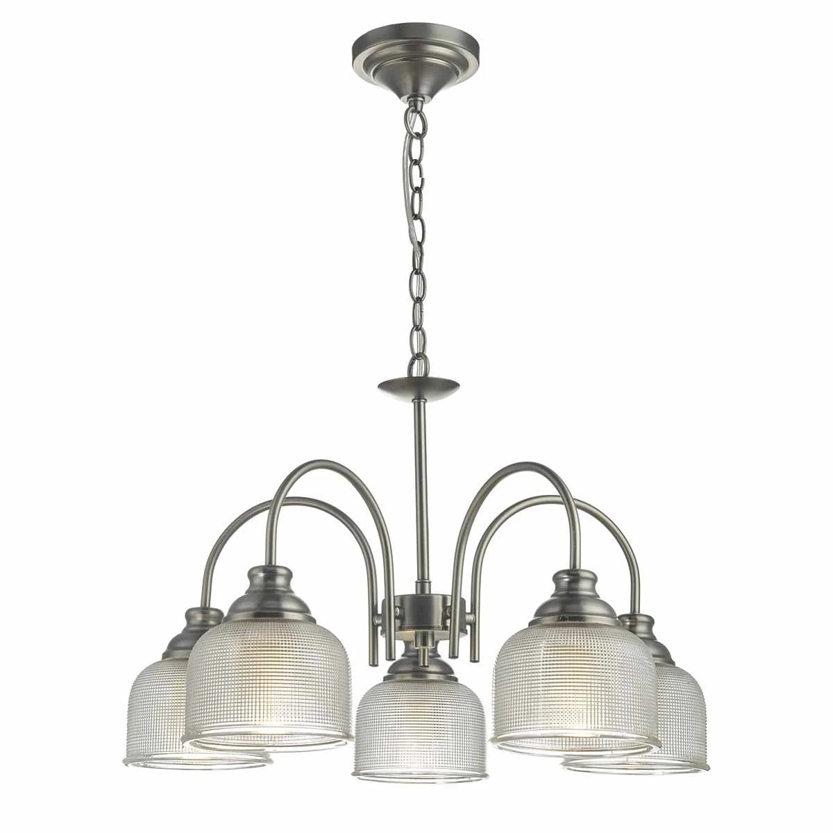 The TACK pendant has vintage-style prismatic glass teamed with antique chrome metalwork, suiting industrial styling and modern interior looks. Height adjustable on installation. Matching wall bracket also available.
