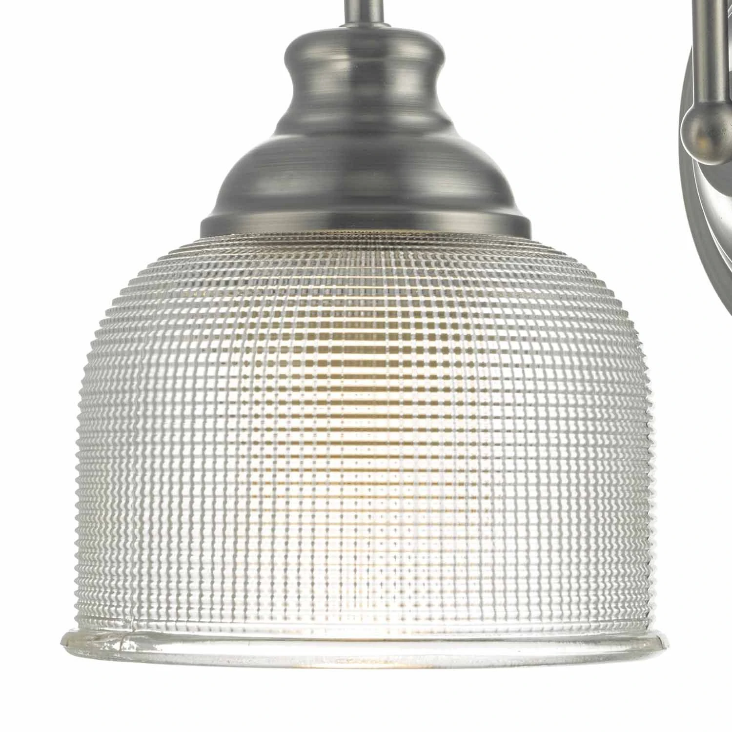 The TACK wall light has vintage-style prismatic glass teamed with antique chrome metalwork, suiting industrial styling and modern interior looks.
