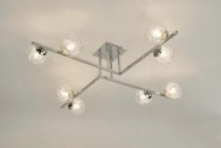 The Taghrid 8 Light Semi Flush features glass spheres encapsulating decorative wire on an angular polished chrome frame. A simple yet decorative fitting that looks great when ceiling height is restricted.