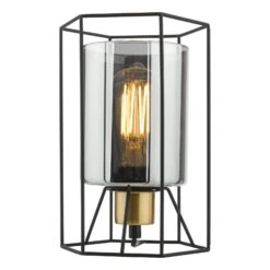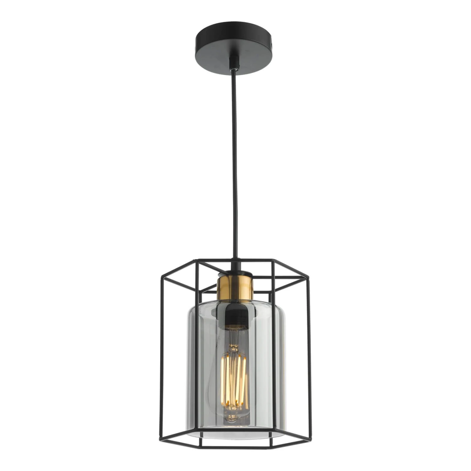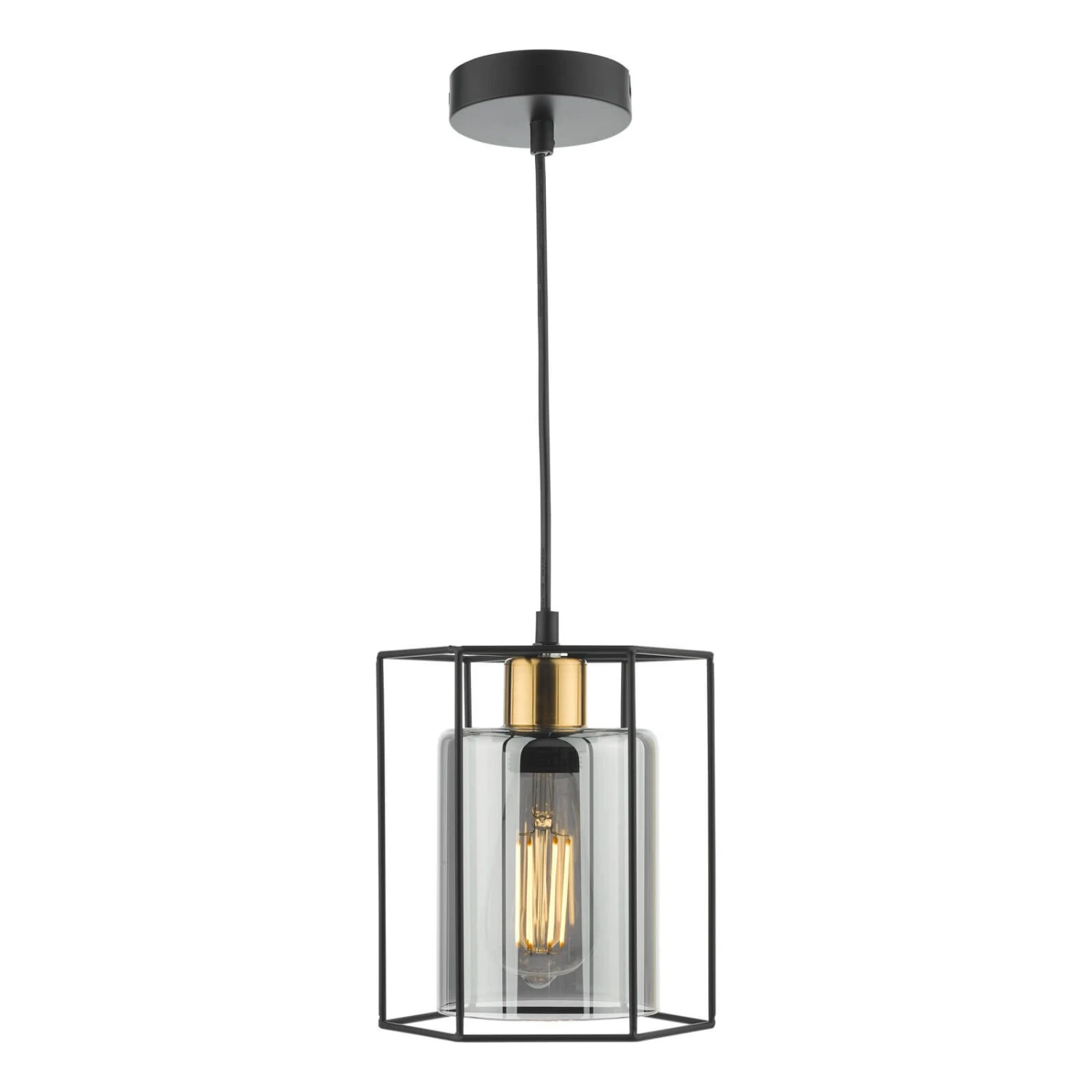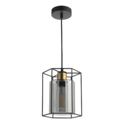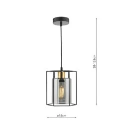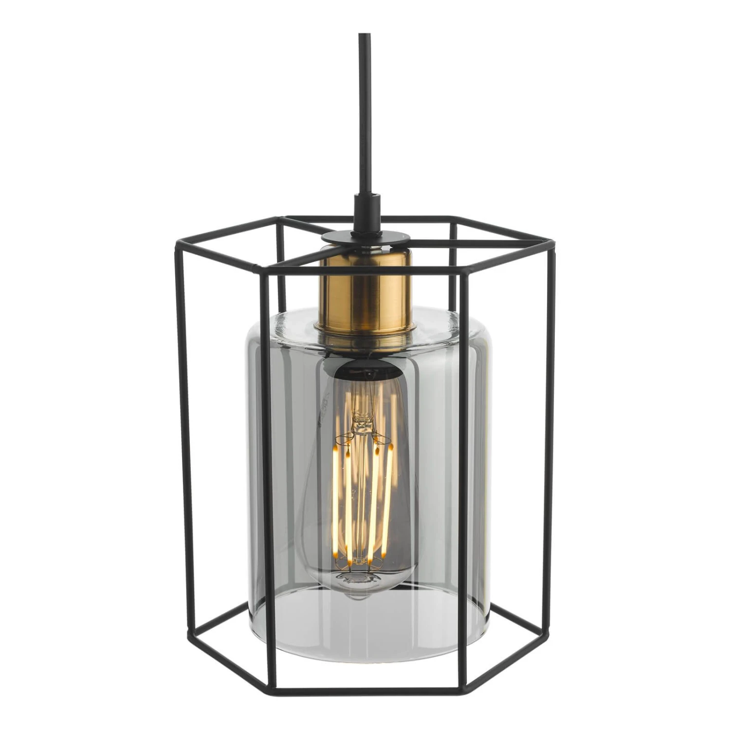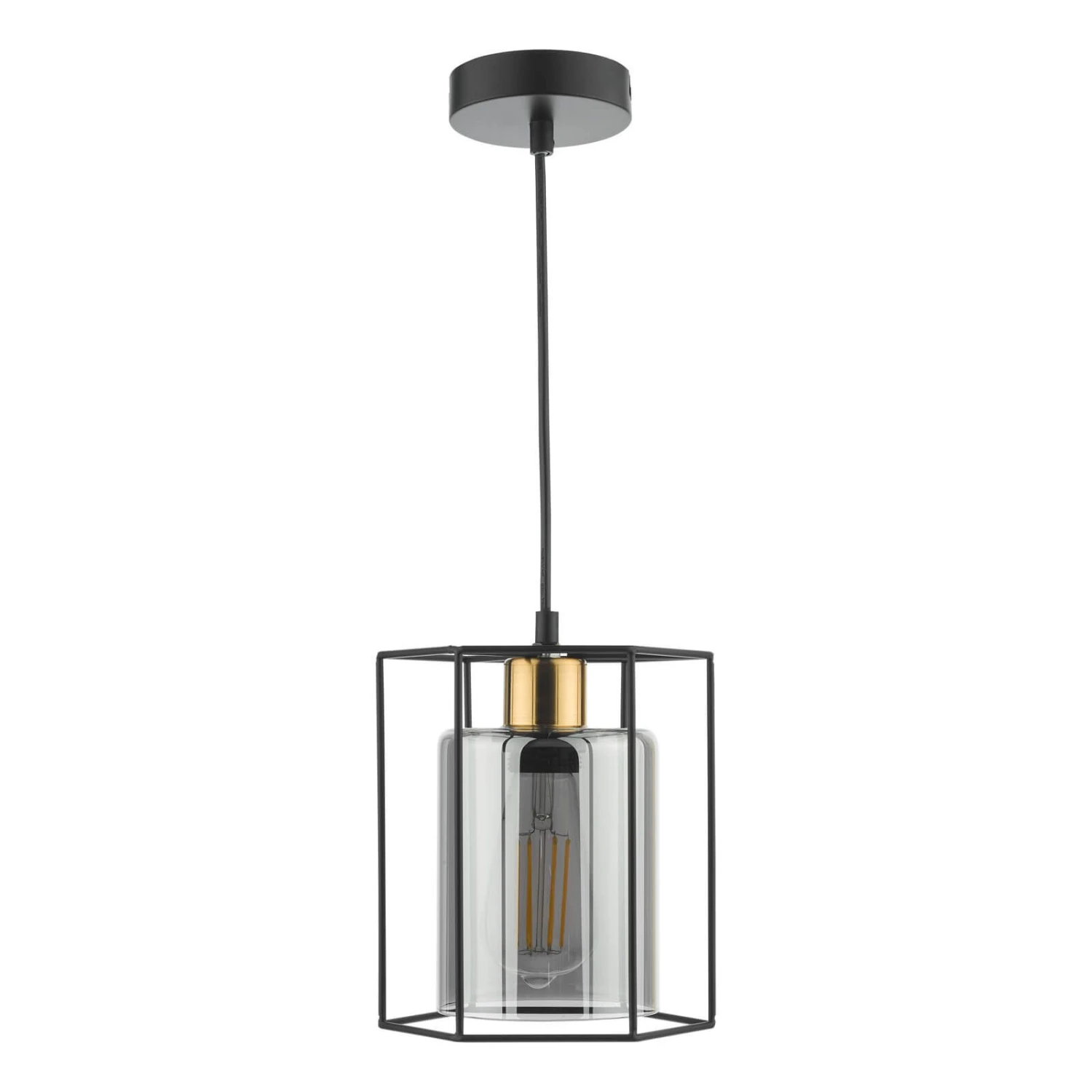 Introducing the Tatum Pendant Matt Black and Smoked Glass – a modern embodiment of sleek design and chic simplicity. This pendant showcases a smoked glass cylinder encased within a clean matt black metal cage. The fixture is adorned with subtle antique brass detailing for a touch of understated elegance. Its minimalist aesthetic seamlessly blends with contemporary interiors.