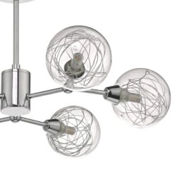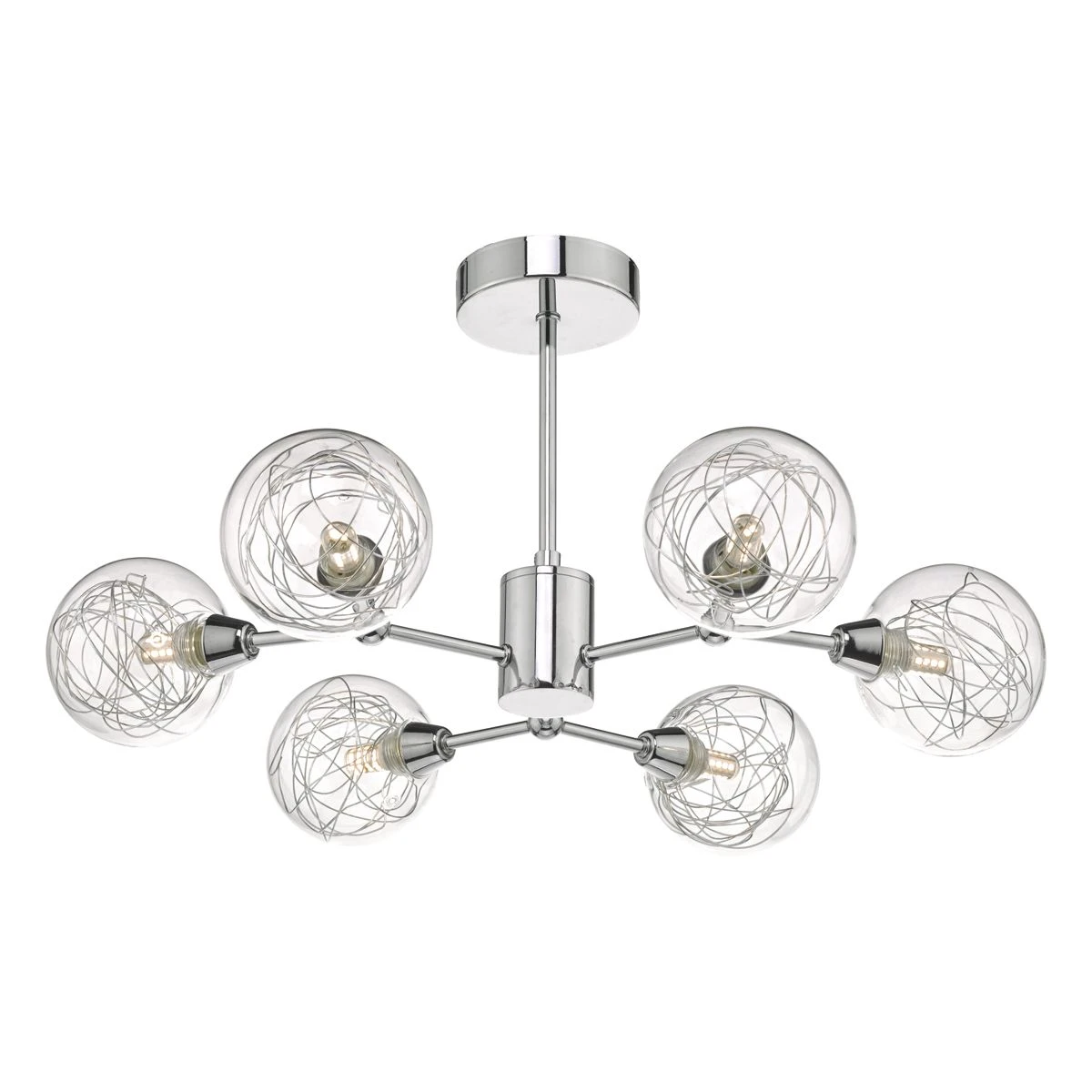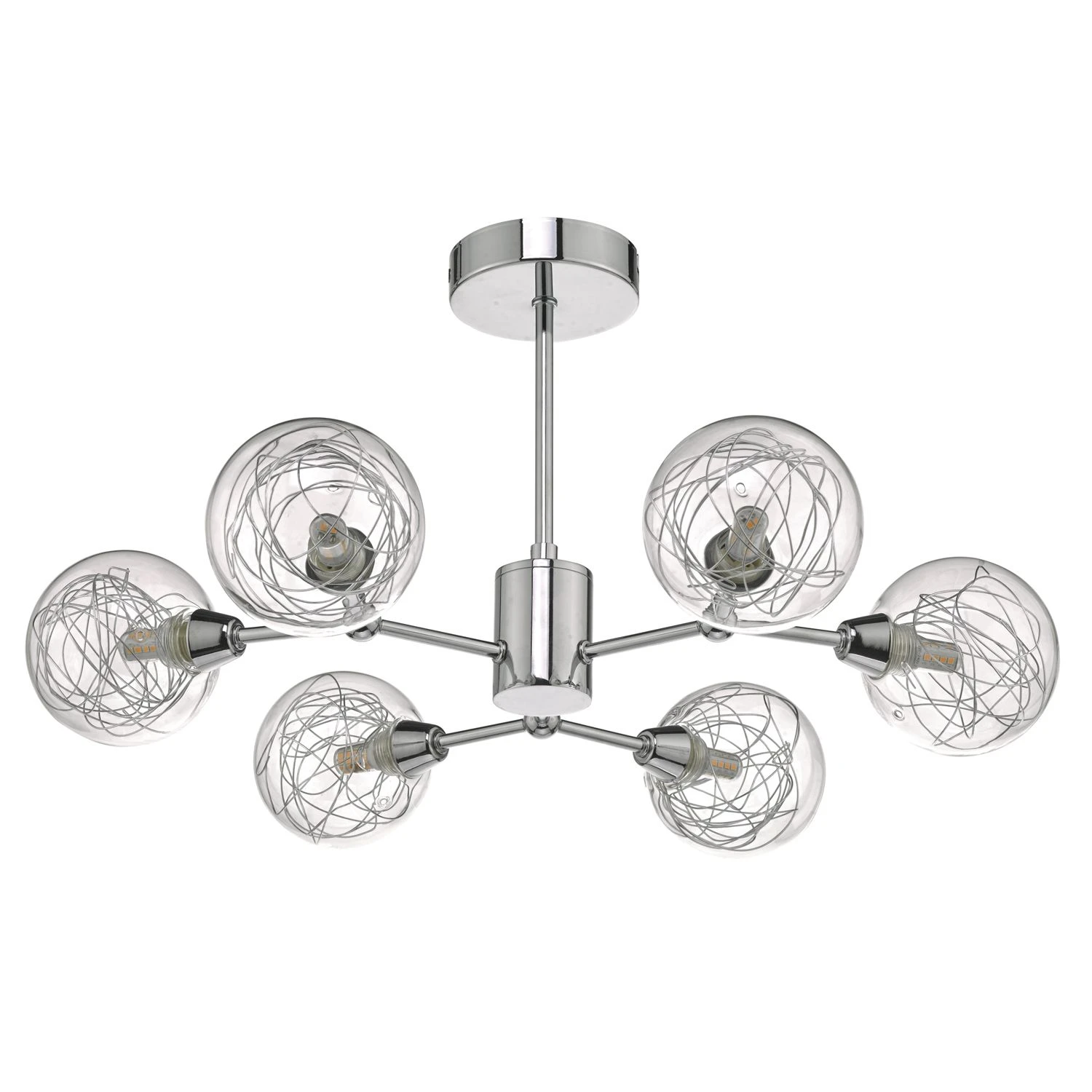 The glass shades of the lovely Tyka semi-flush light feature decorative swirls of aluminium wire; complete with a polished chrome finish.