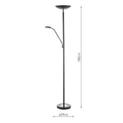 The modern Victor LED Mother and Child is a wonderfully versatile floor lamp. Featuring a bright dimmable uplighter which can be angled to direct light against a wall or further into the room. An extra adjustable reading light is installed that can be controlled independently. Both light sources used highly efficient LED, which is also cool to the touch for ultimate safety. Finished in satin black with brushed nickel accents.