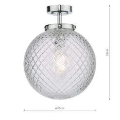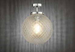 The WAYNE bathroom semi flush light with a textured glass shade and polished chrome metalwork. Being IP44 rated it’s suitable for safe use within Zones 1 and 2 of the bathroom when installed correctly.