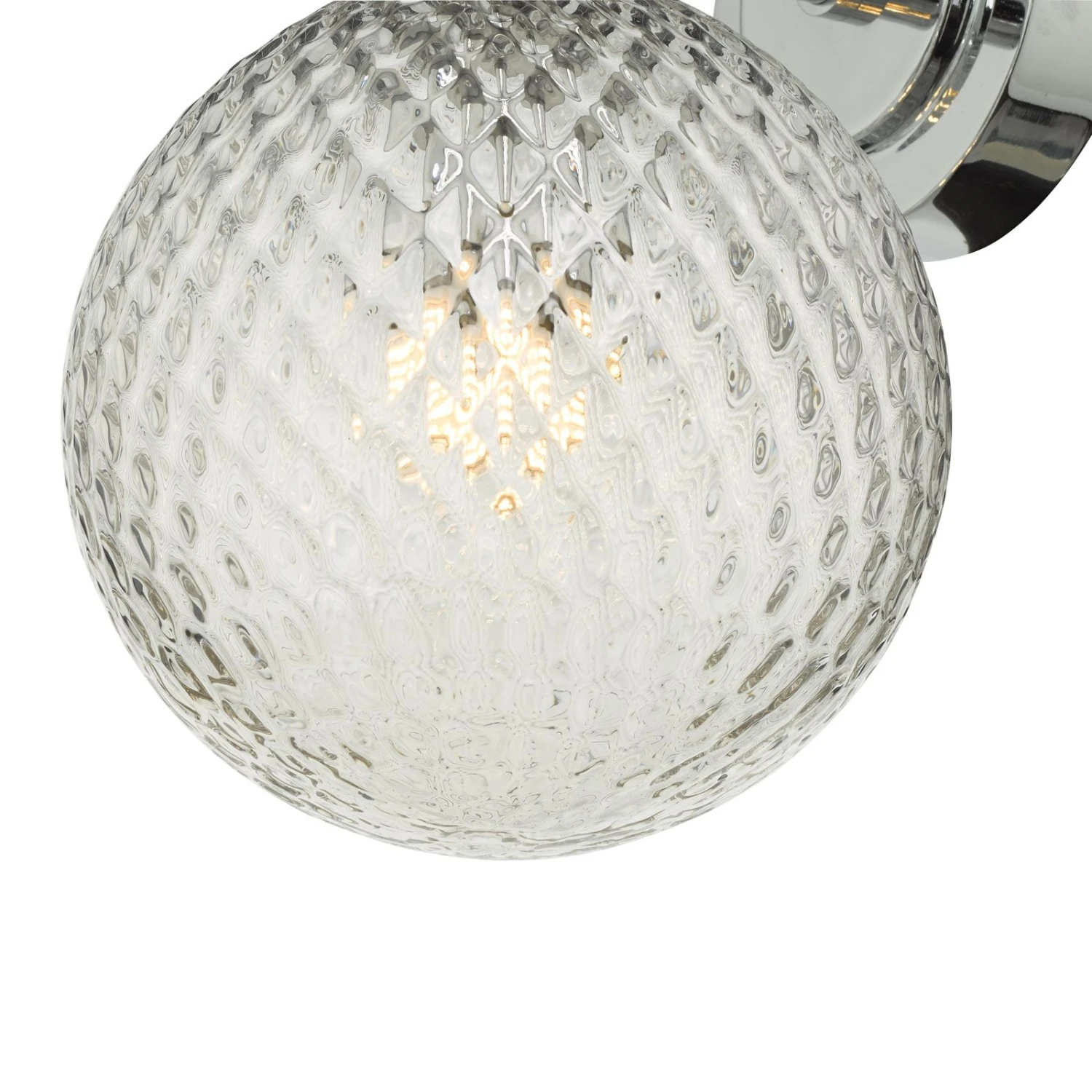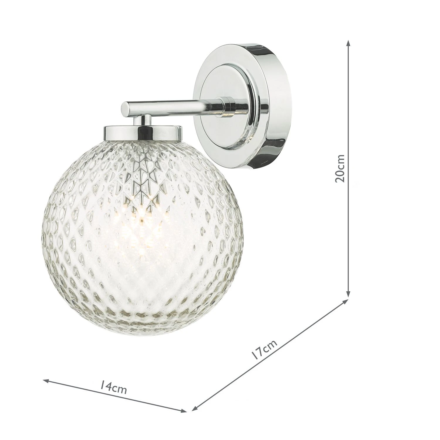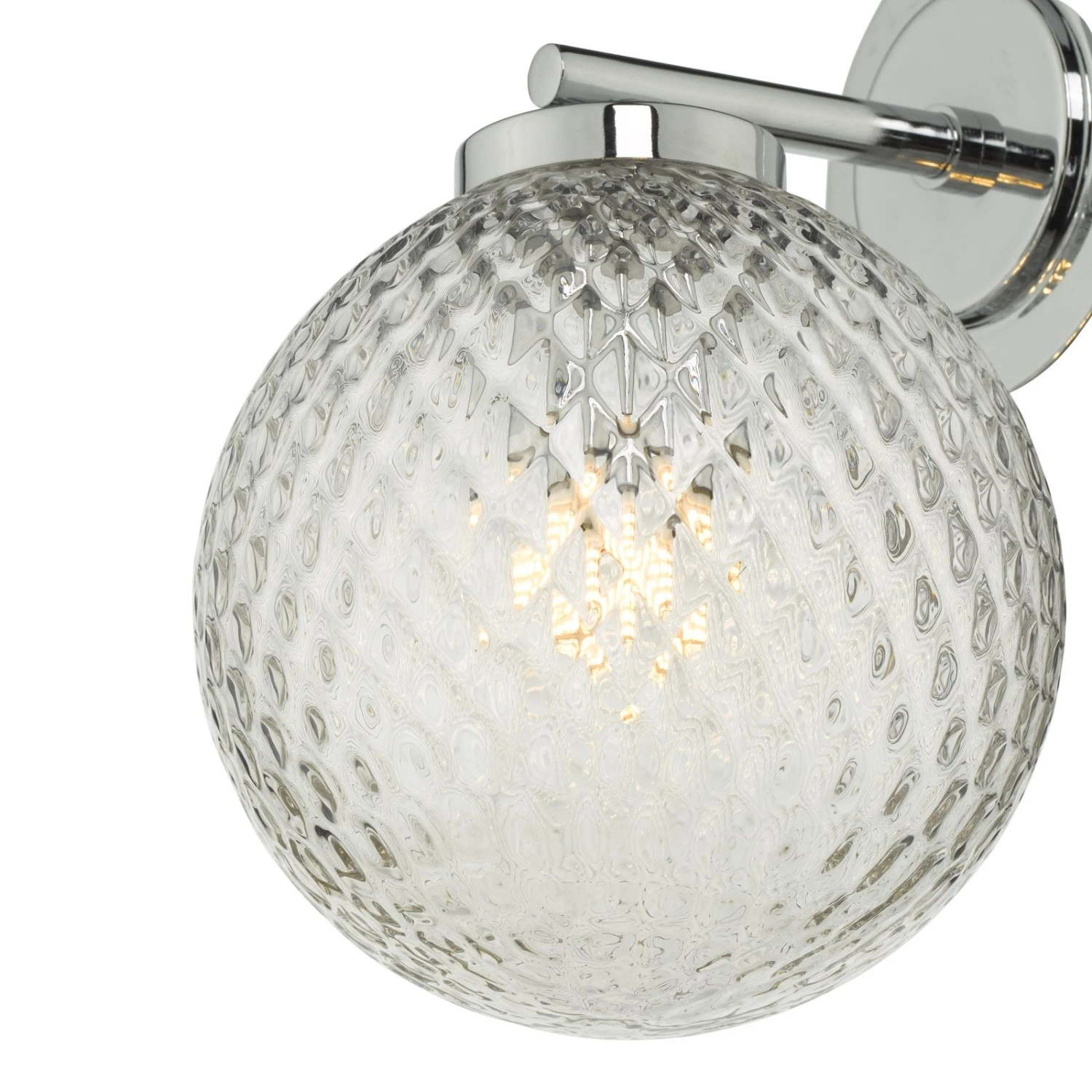The WAYNE bathroom wall light with a textured glass shade and polished chrome metalwork. The textured glass creates a stunning effect when on and looks equally brilliant when off. We find it works best in pairs framing a mirror.