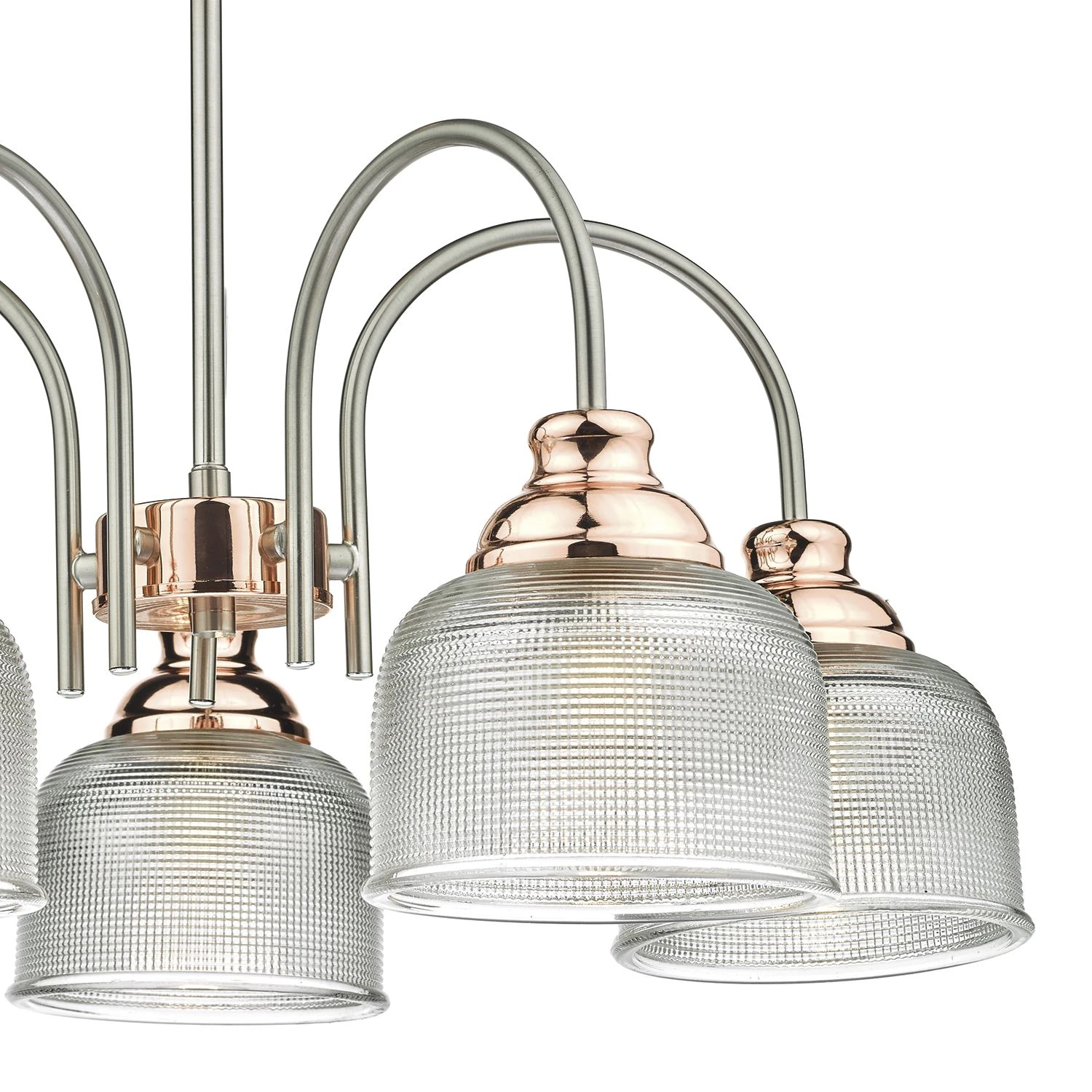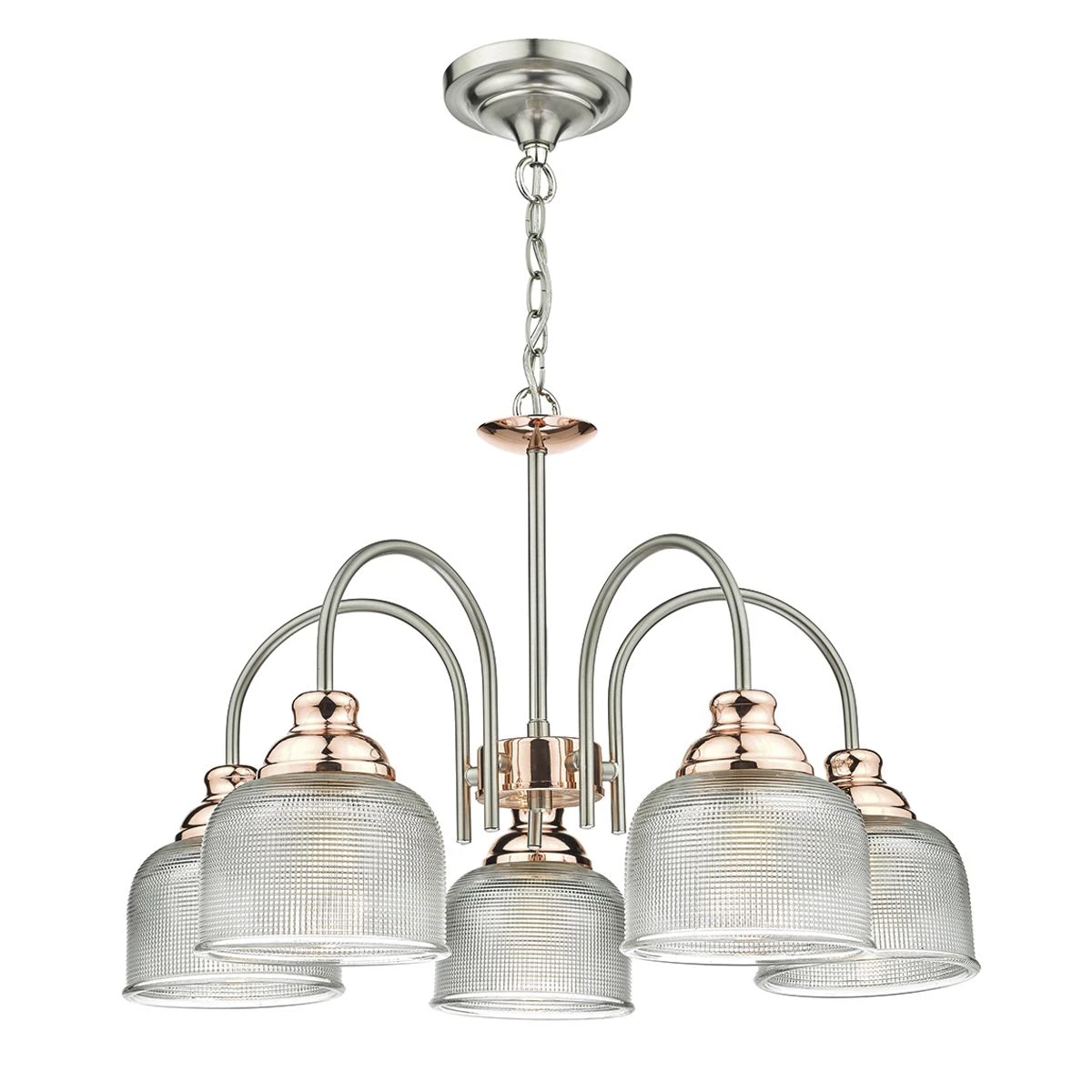 WHARFDALE – the vintage style prismatic glass teamed with soft satin chrome metal work and bright copper detailing produces a contemporary look that suits industrial styling as well as the modern interior look. Height adjustable on installation. Matching wall bracket available.