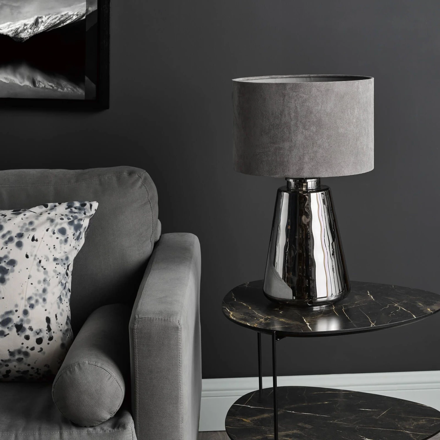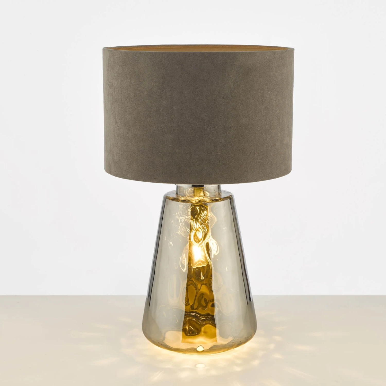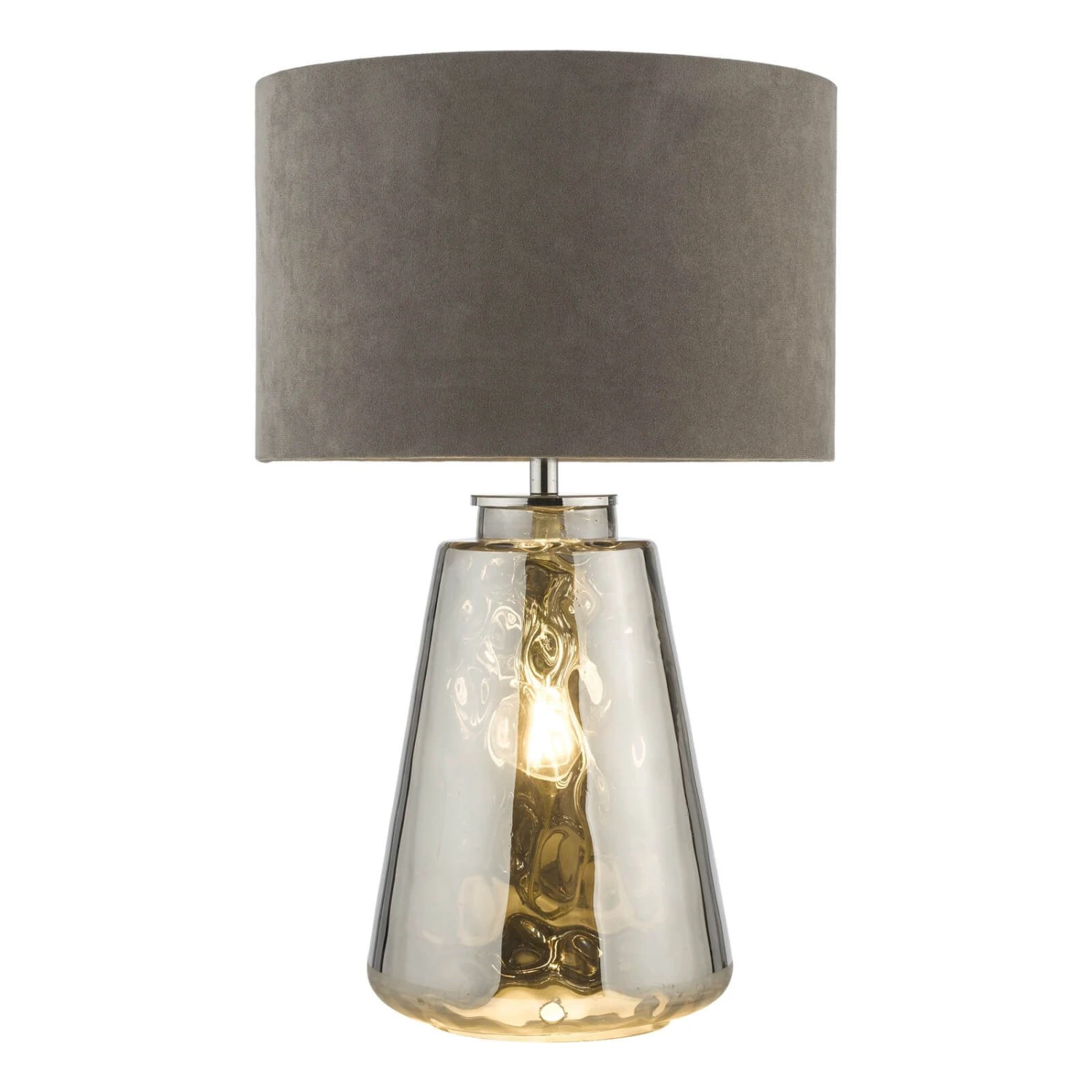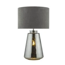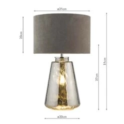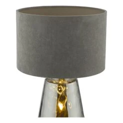 Introducing the Wycliffe Table Lamp – a versatile embodiment of elegance that seamlessly enhances your home’s ambiance. The lamp’s standout feature is its base, crafted from smoked dimple glass, while the shade exudes sophistication in grey velvet. The Wycliffe table lamp offers a dual lit lighting arrangement, providing you with the flexibility to create a warm ambient glow or a more subtle lower light, perfect for achieving an atmospheric effect. The clear cable comes with an inline rocker switch, ensuring effortless control and convenience.