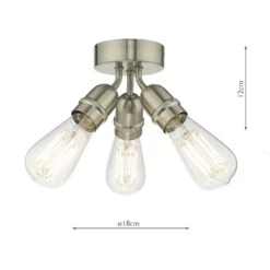 The YAO 3 Light Flush ceiling light is compact in size (diameter 18cm) but capable of providing a great light level from its 3 lamp heads. Finished in beautiful soft satin nickel with authentic vintage detailing this ceiling fitting has a great deal of character and understated style. The arms are fixed giving an all round light out-put and as it sits close to the ceiling it is a great option for low ceilings or where space is limited.