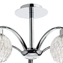 Perfect for lower ceilings the YASMIN range features a compact 5 light in polished chrome with a clear ribbed glass and inner wire detail that diffuses the light beatuifully. This compact fitting spreads an excellent light for its size. The matching wall bracket has a switch concealed at the base of the back plate.