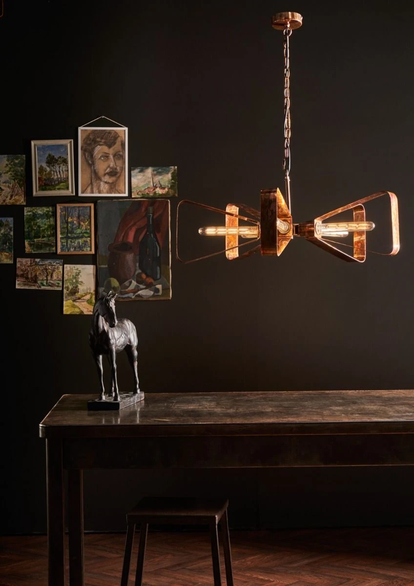 For an on-trend refined industrial look, choose the statement Yavanna ceiling pendant light from dar Lighting. The five horizontal, lights are each framed by a thin, triangular ‘stirrup’ shape band with a gorgeous mottled finish of oiled copper. Pair with vintage tube bulbs to complete the aesthetic. Includes matching ceiling rose and 150cm hanging chain, plus black cable.