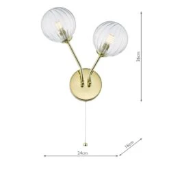 The Yiska 2lt wall light features an organic branch like structure, inspired by mother nature. The polished gold metal work is complemented by gently ribbed clear glass shades.