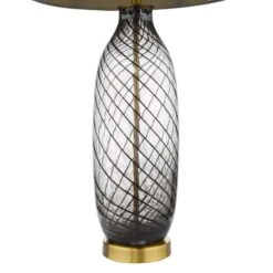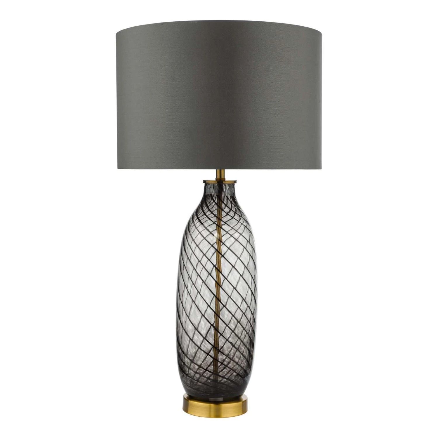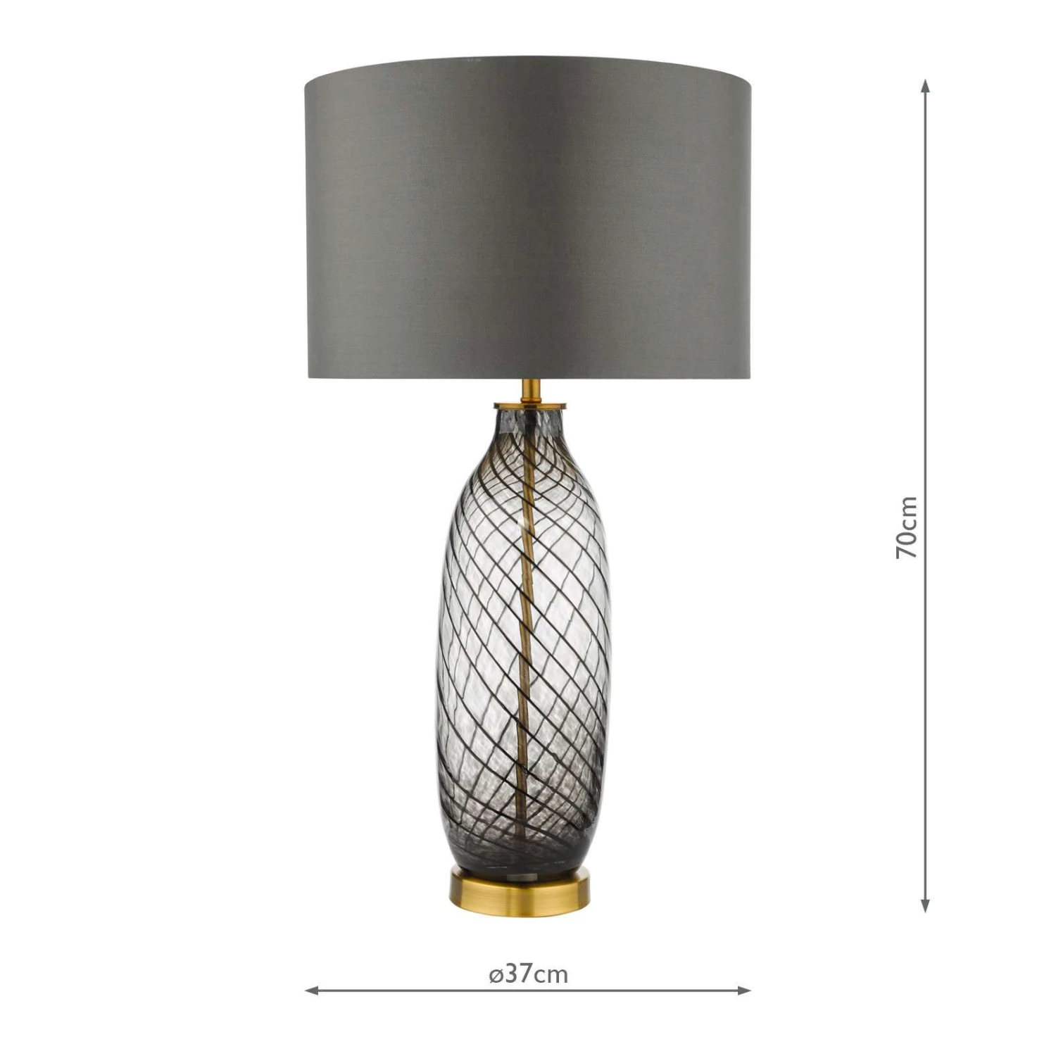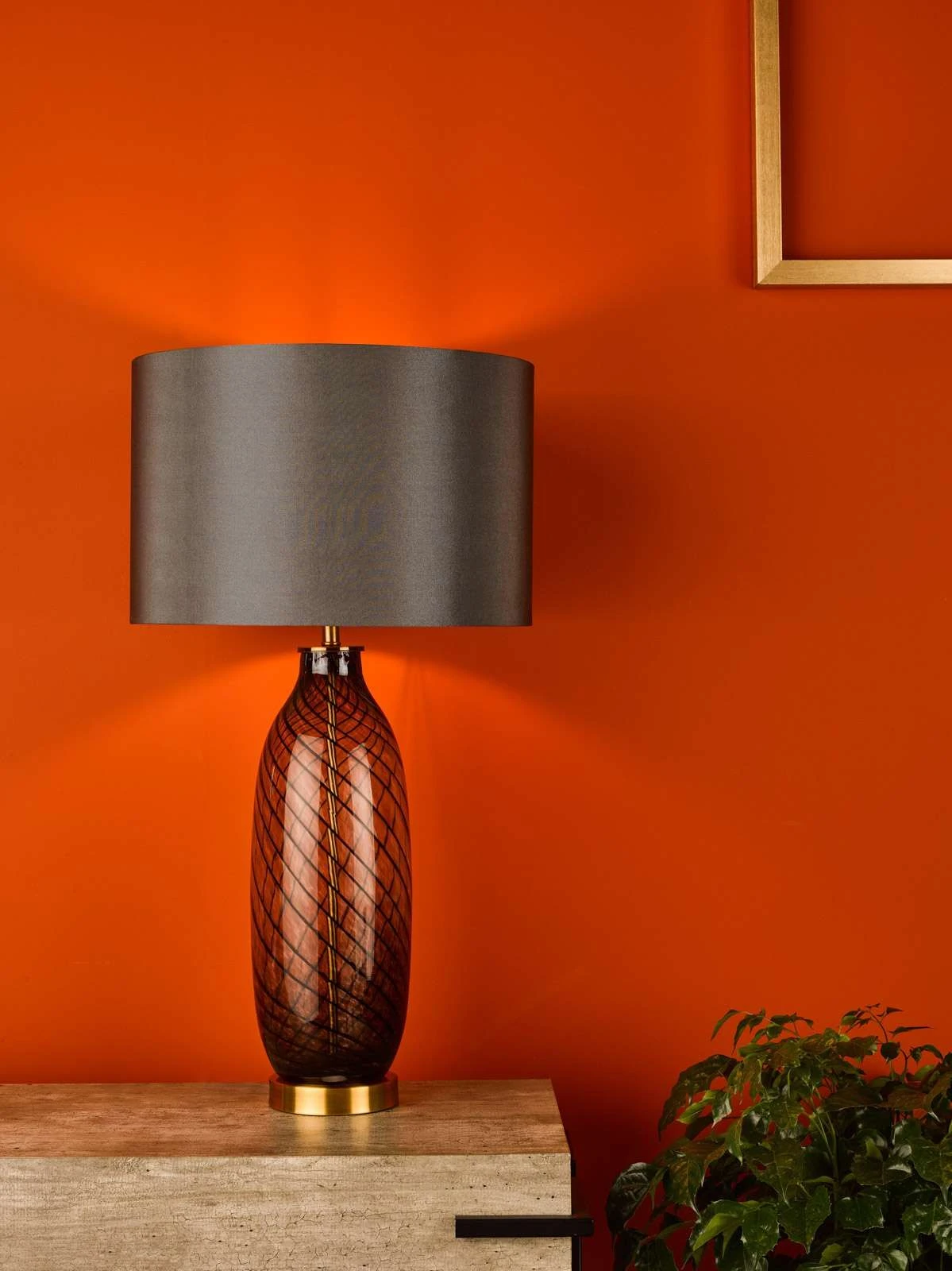 This glass table lamp is free blown meaning that the pattern size and shape may vary a little. Comes complete with a dark grey faux silk shade with matching lining.