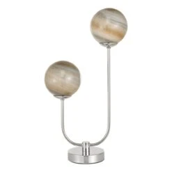 Mikara 2 Light Table Lamp Polished Chrome Marble Effect Glass