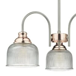 Wharfdale 5lt Pendant Satin Chrome Copper Detail Glass Shades